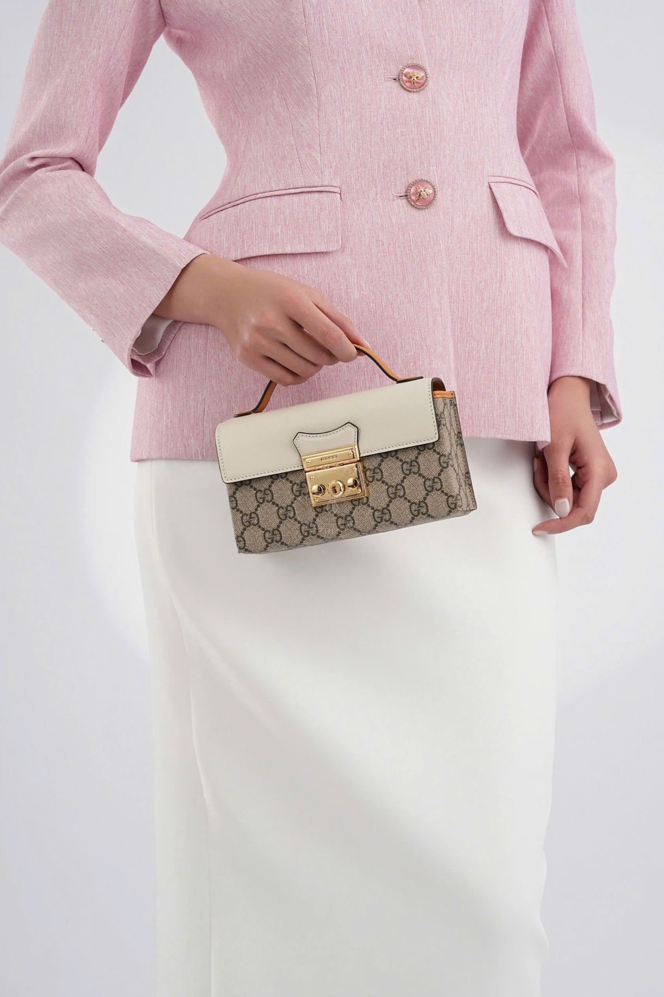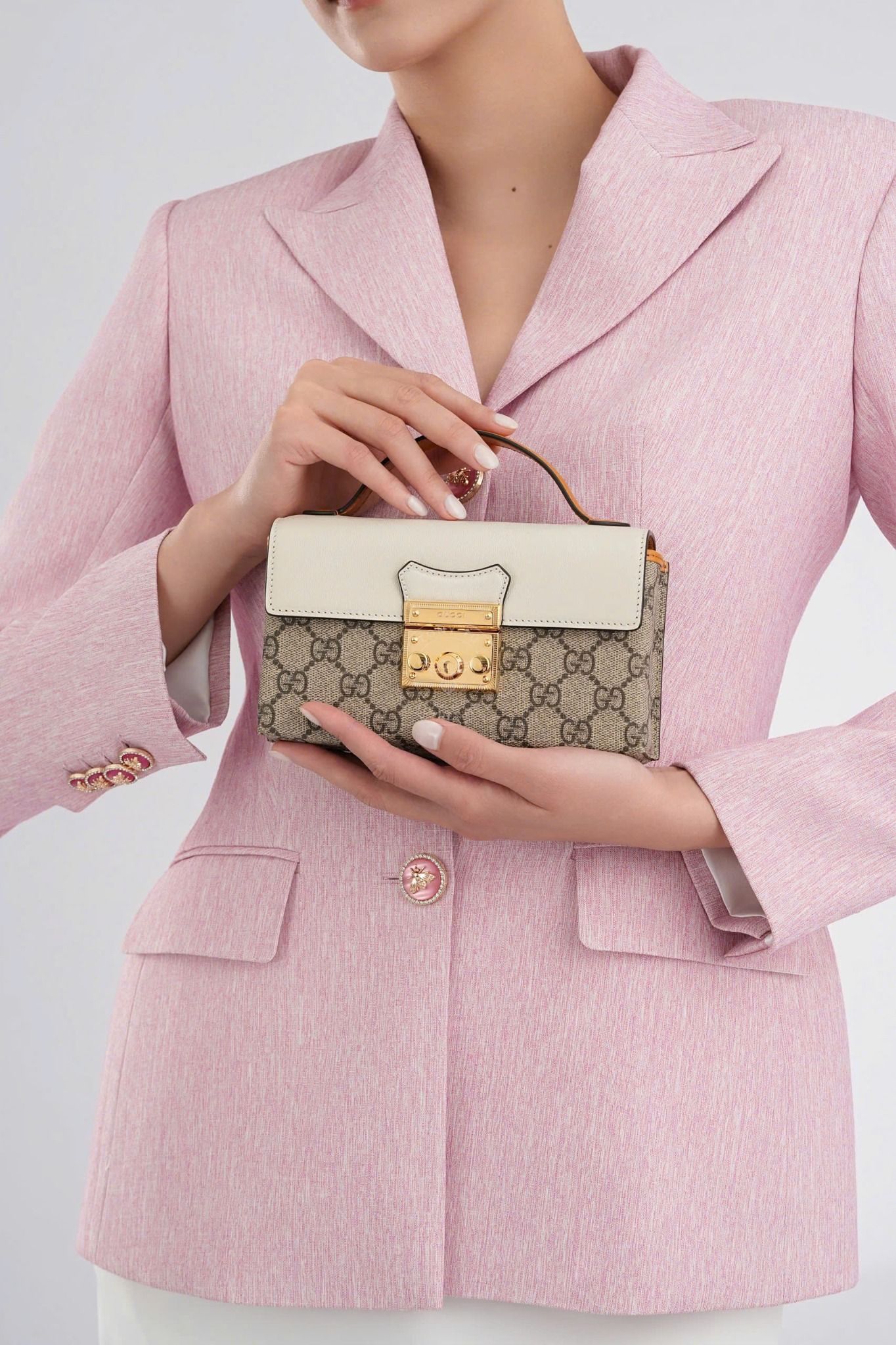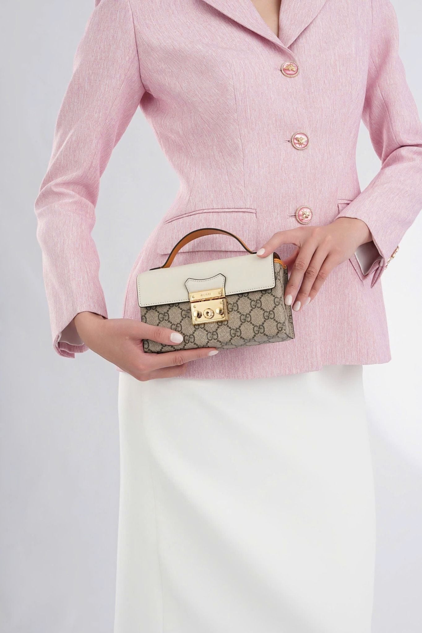 - The Padlock bag features Gucci’s iconic GG Supreme motif paired with gold-tone hardware—evoking the timeless elegance of 1960s Italian fashion.
