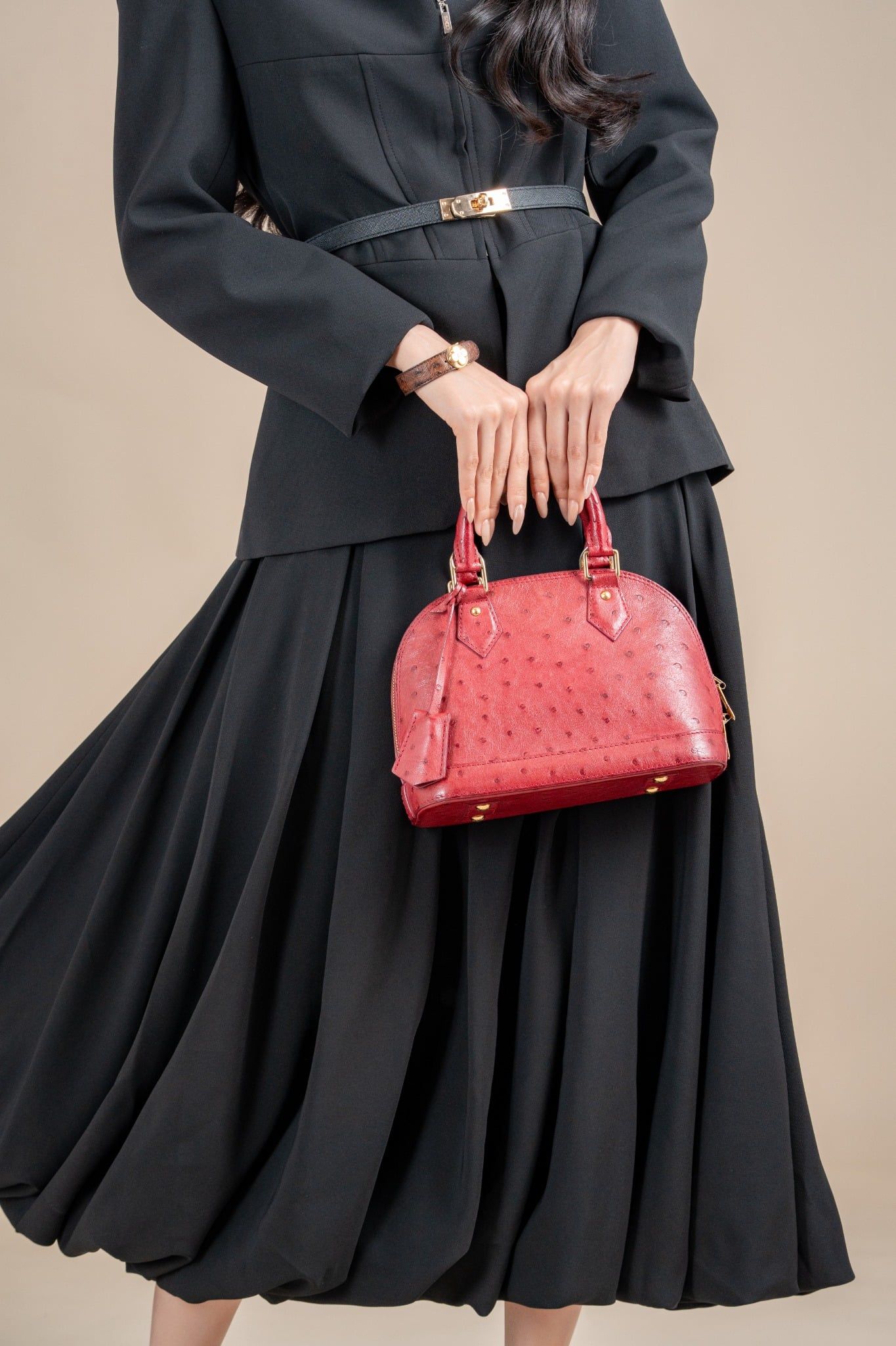 - Chế tác từ da đà điểu tự nhiên cao cấp – chất liệu thuộc hàng xa xỉ bậc nhất trong thế giới thời trang trên nền thiết kế Alma kinh điển của Louis Vuitton, chiếc túi không chỉ toát lên vẻ sang trọng tuyệt đối mà còn khẳng định đẳng cấp của người sở hữu.