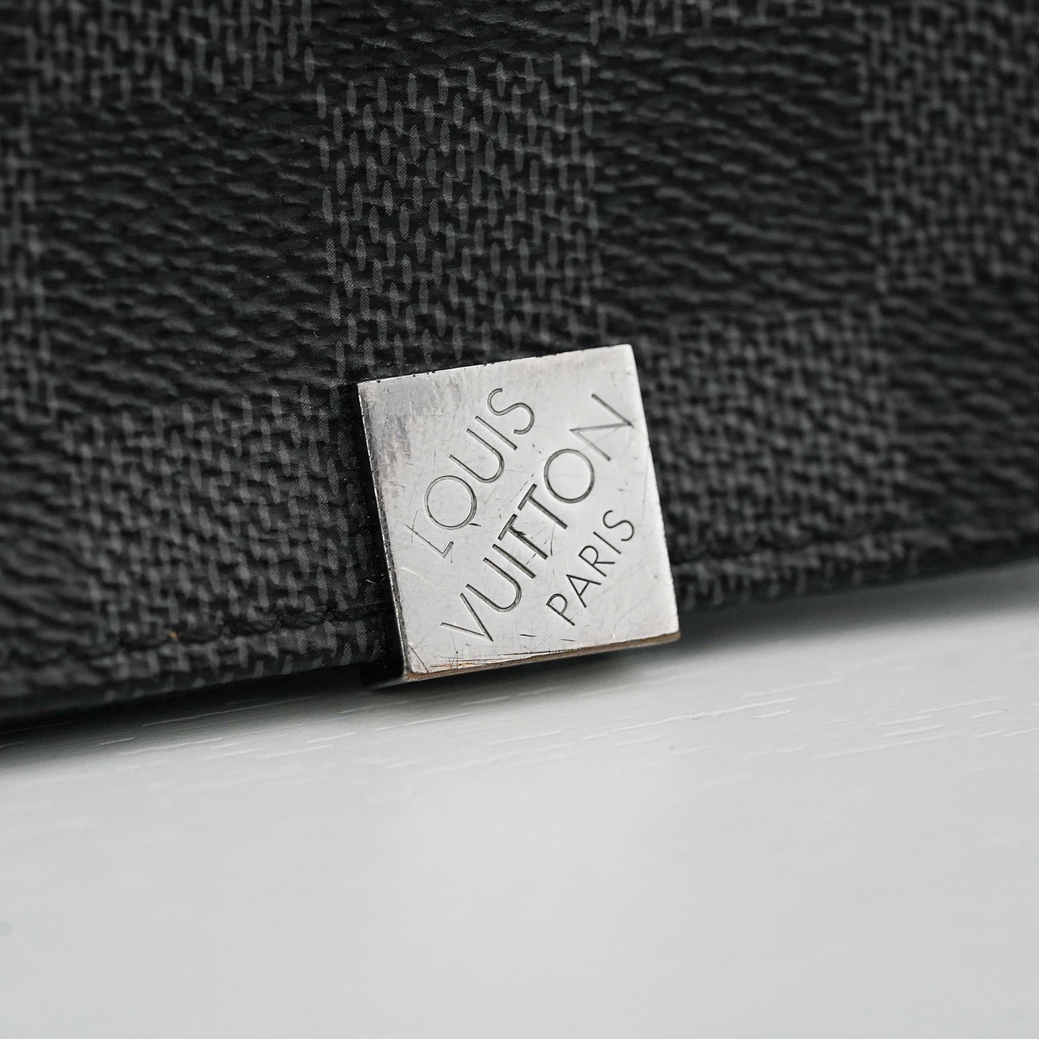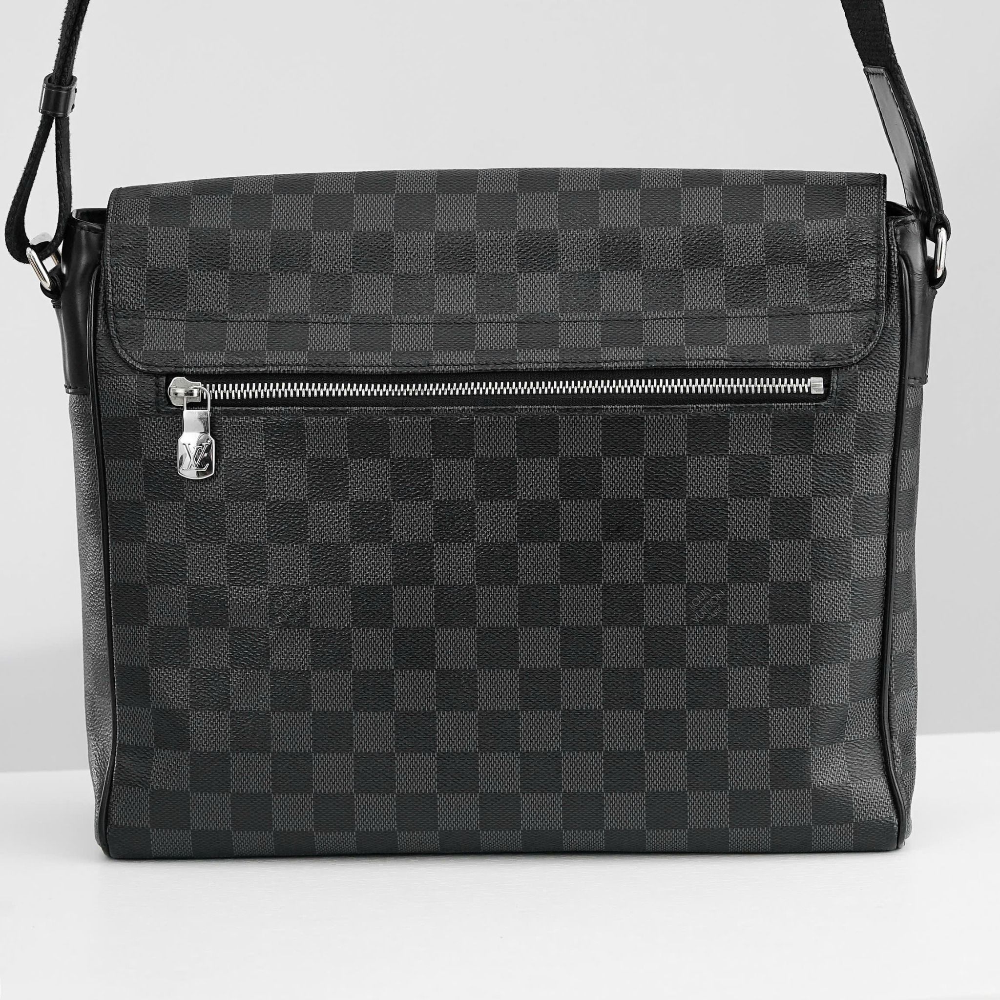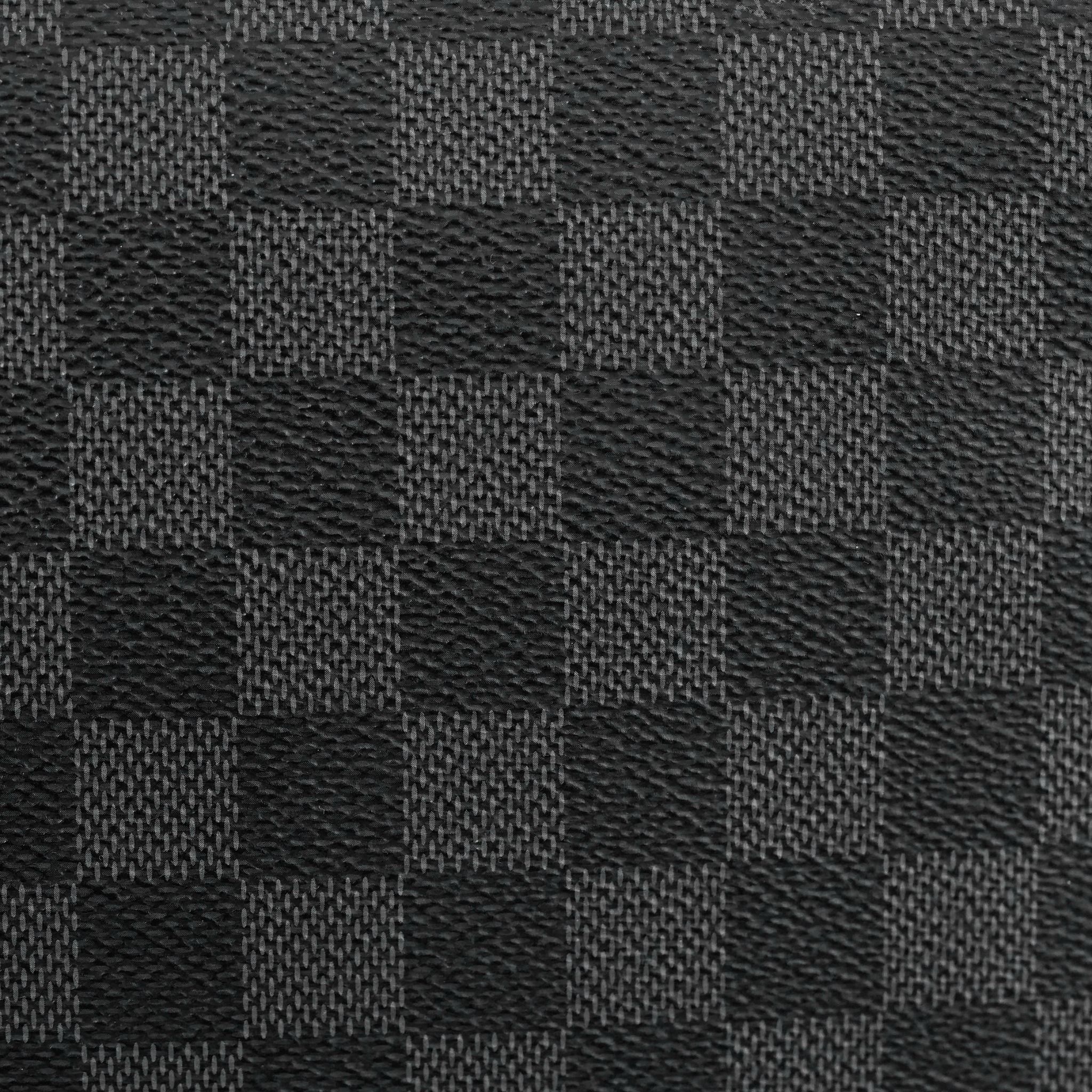 - The masculine and contemporary Damier Graphite pattern, with its black and grey checkered design, is crafted from vinyl-coated Canvas, enhancing both aesthetics and durability with excellent water and scratch resistance.
