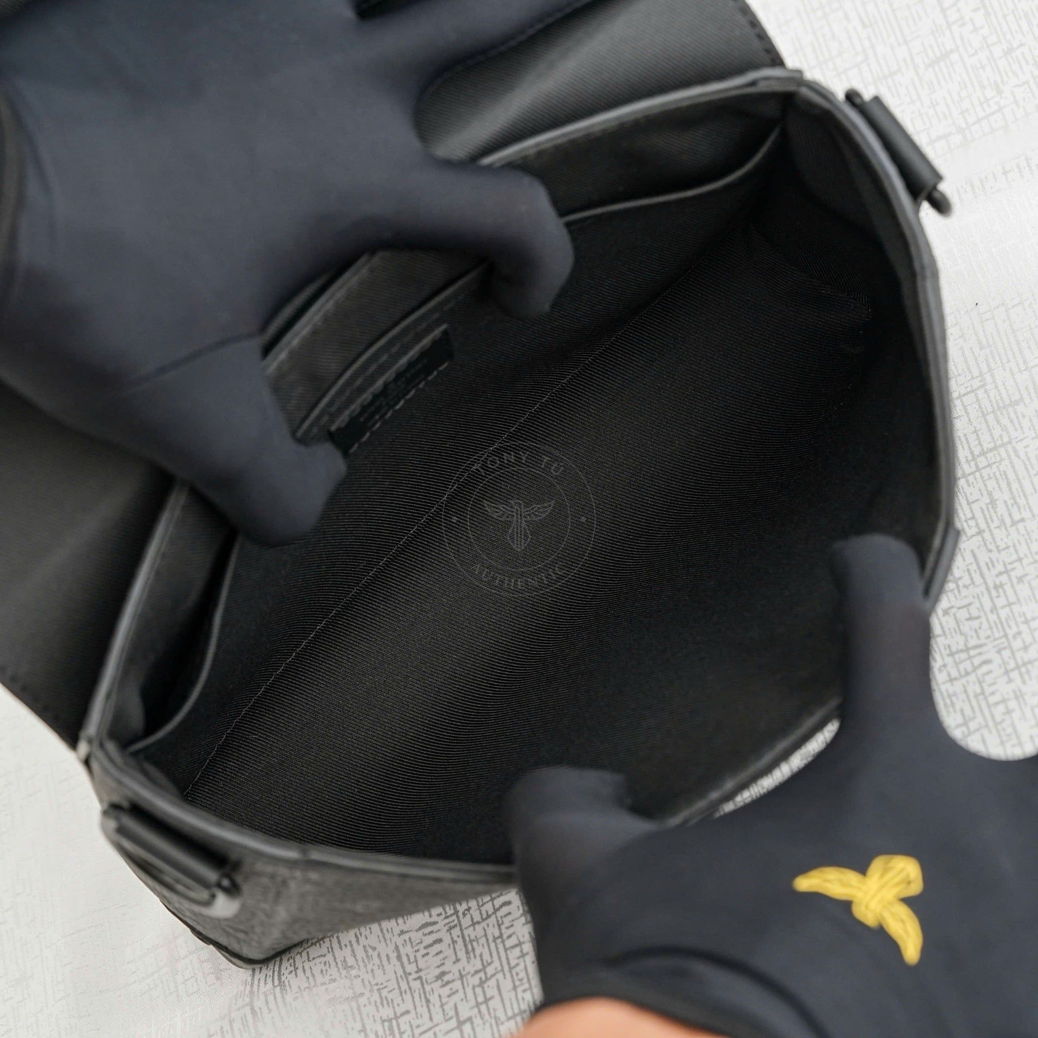 - Chế tác từ da Taurillon cao cấp nguyên tấm. Bề mặt lì, vân nhẹ, mềm mại nhưng vẫn giữ form rất đứng. Màu đen toàn phần giúp tôn lên từng đường cắt và chi tiết kim loại góc, đặc trưng dòng trunk.