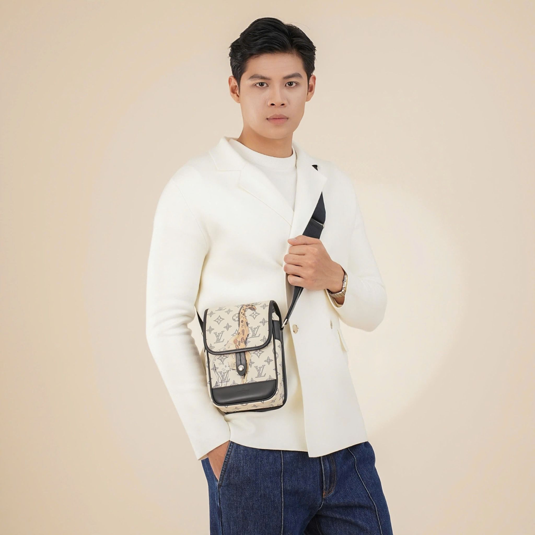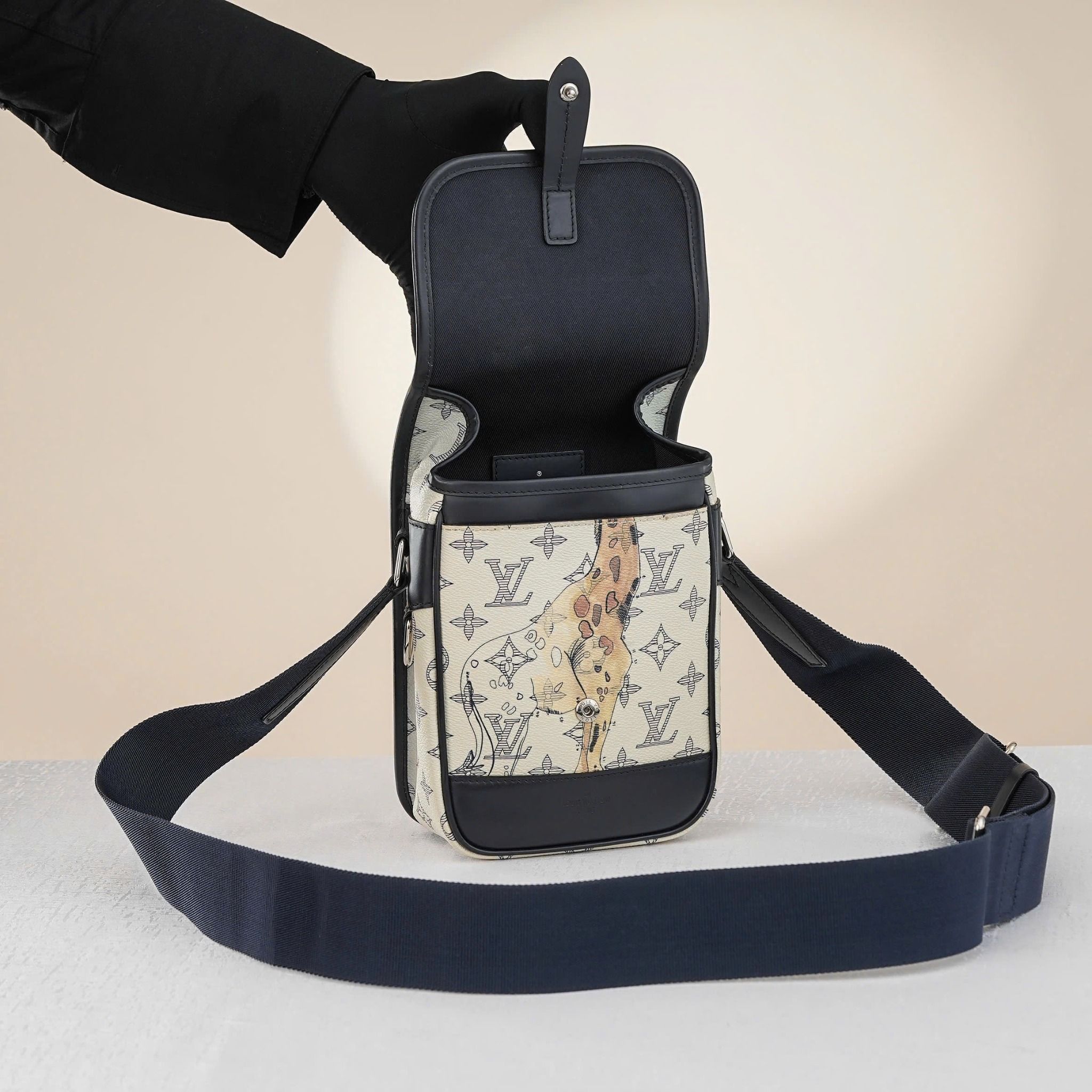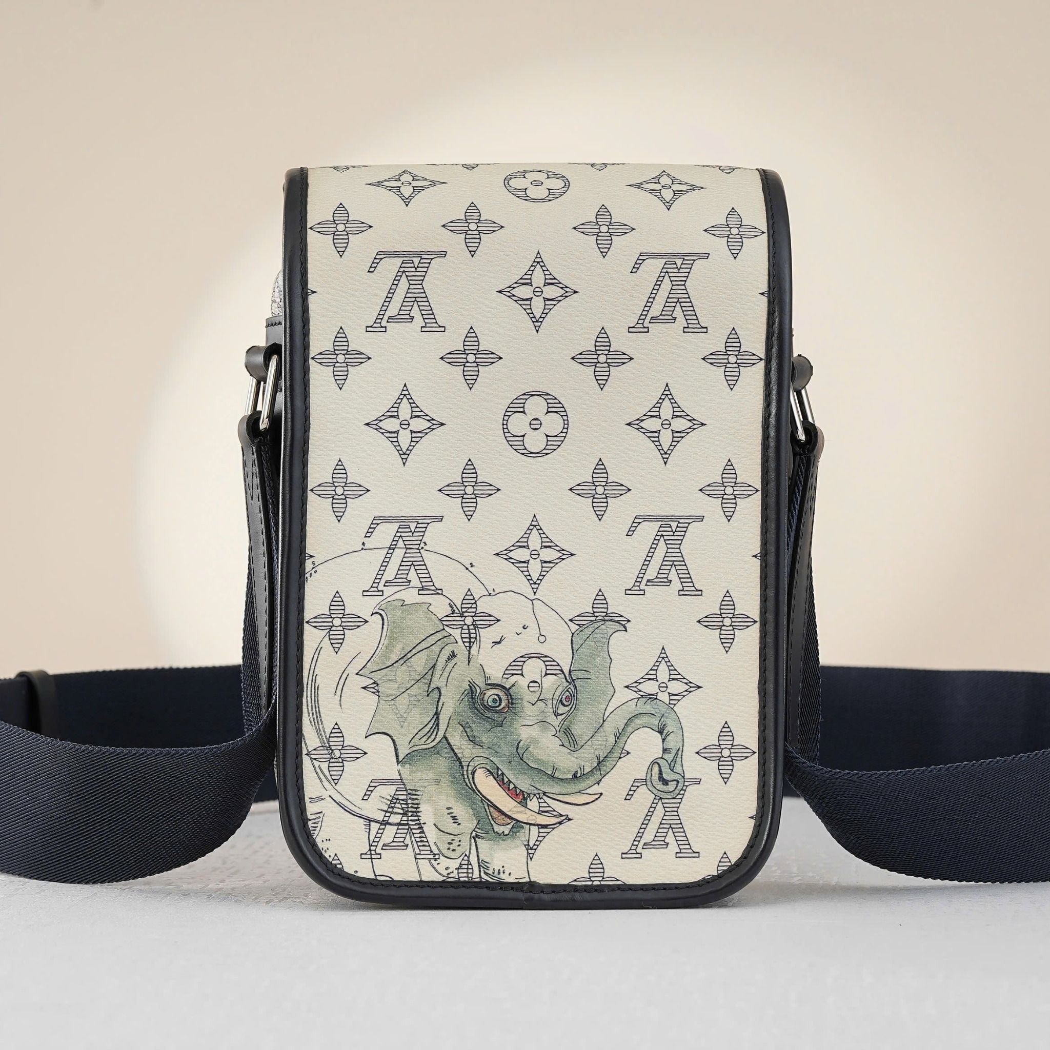 - Điểm nhấn đặc biệt là họa tiết hươu cao cổ và voi Savane, được in sắc nét ở cả mặt trước và sau túi, kết hợp với tông màu trắng trang nhã và họa tiết Monogram độc đáo, gợi lên hình ảnh thảo nguyên hoang dã và phóng khoáng, thể hiện gu thẩm mỹ tinh tế và sự khác biệt của chủ nhân, phù hợp nhất để đi sự kiện.