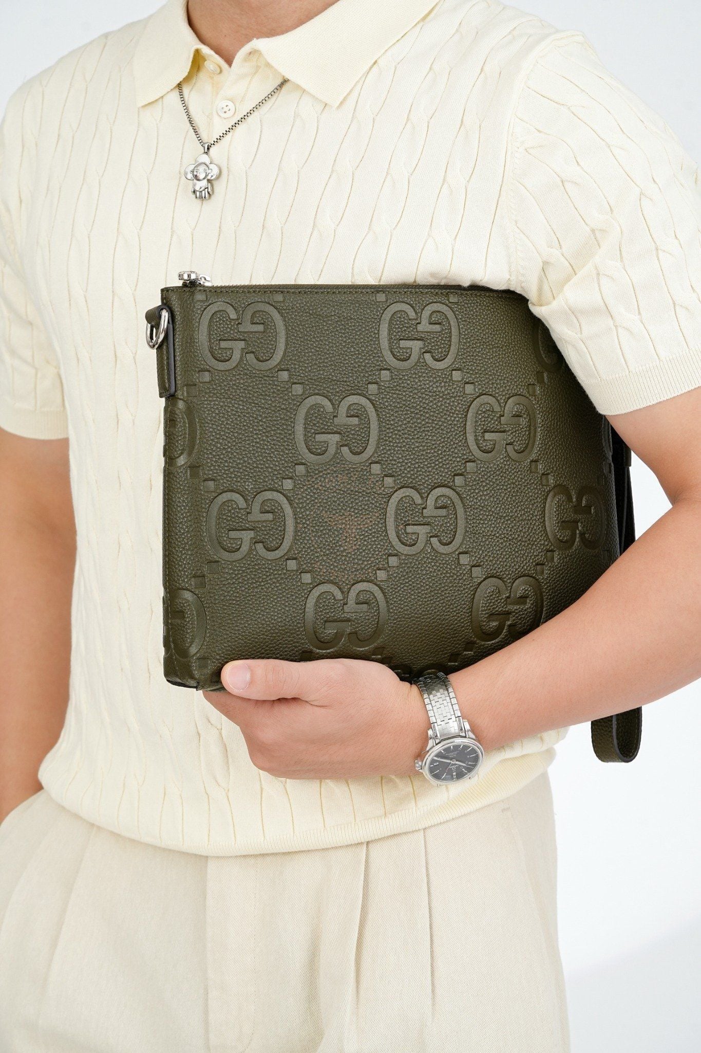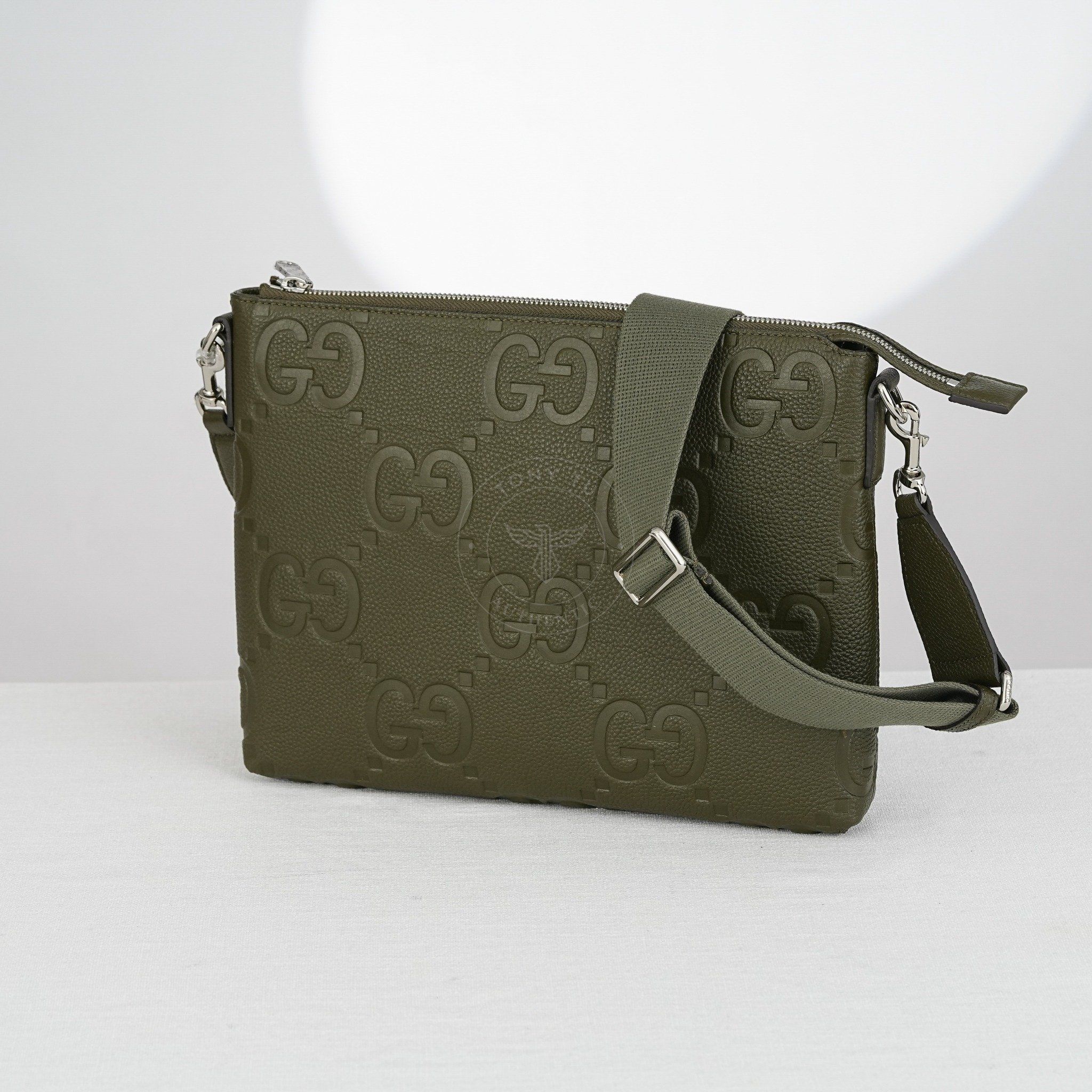 Túi đeo/Pouch 𝐆𝐮𝐜𝐜𝐢 𝐉𝐮𝐦𝐛𝐨 𝐆𝐆 𝐃𝐚𝐫𝐤 𝐆𝐫𝐞𝐞𝐧 𝐂𝐨𝐰𝐡𝐢𝐝𝐞 (Xanh rêu) size 31
