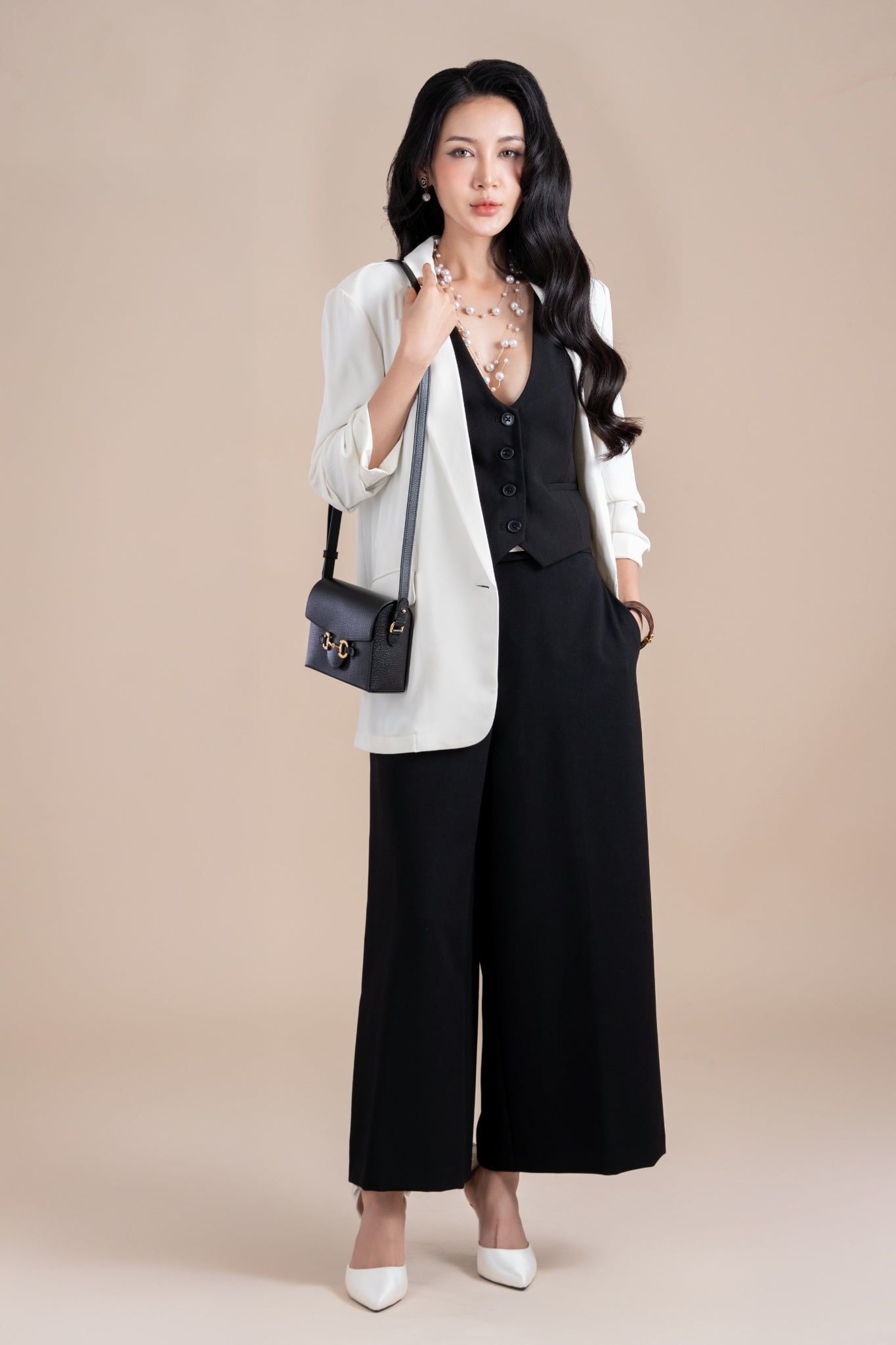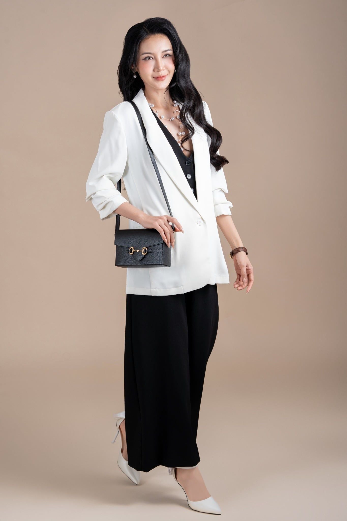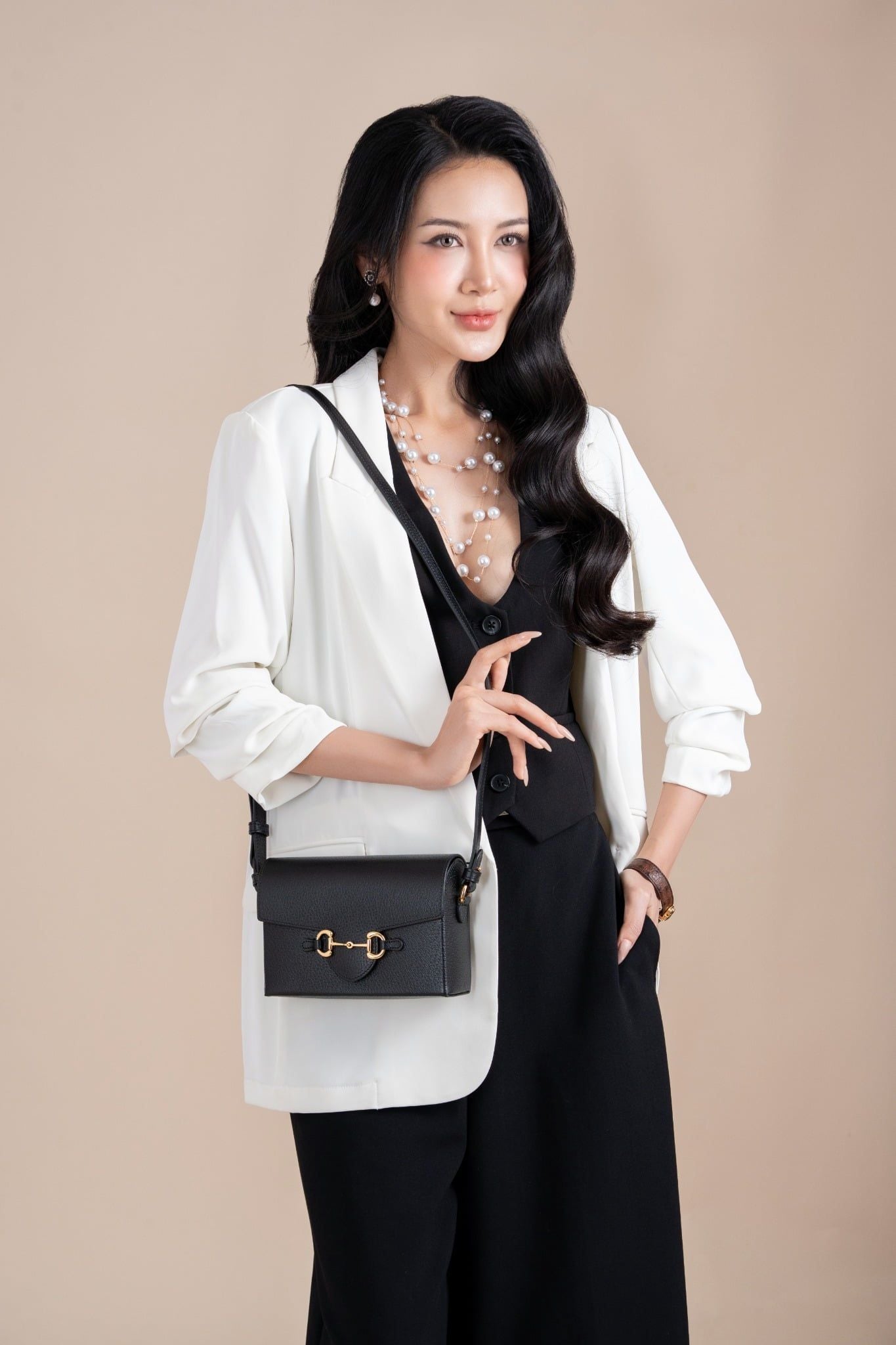 - Tông đen tuyền huyền bí và thanh lịch, làm nền cho chi tiết khoá Horsebit kinh điển vàng bóng, đem đến một vẻ đẹp thời thượng và sang trọng.