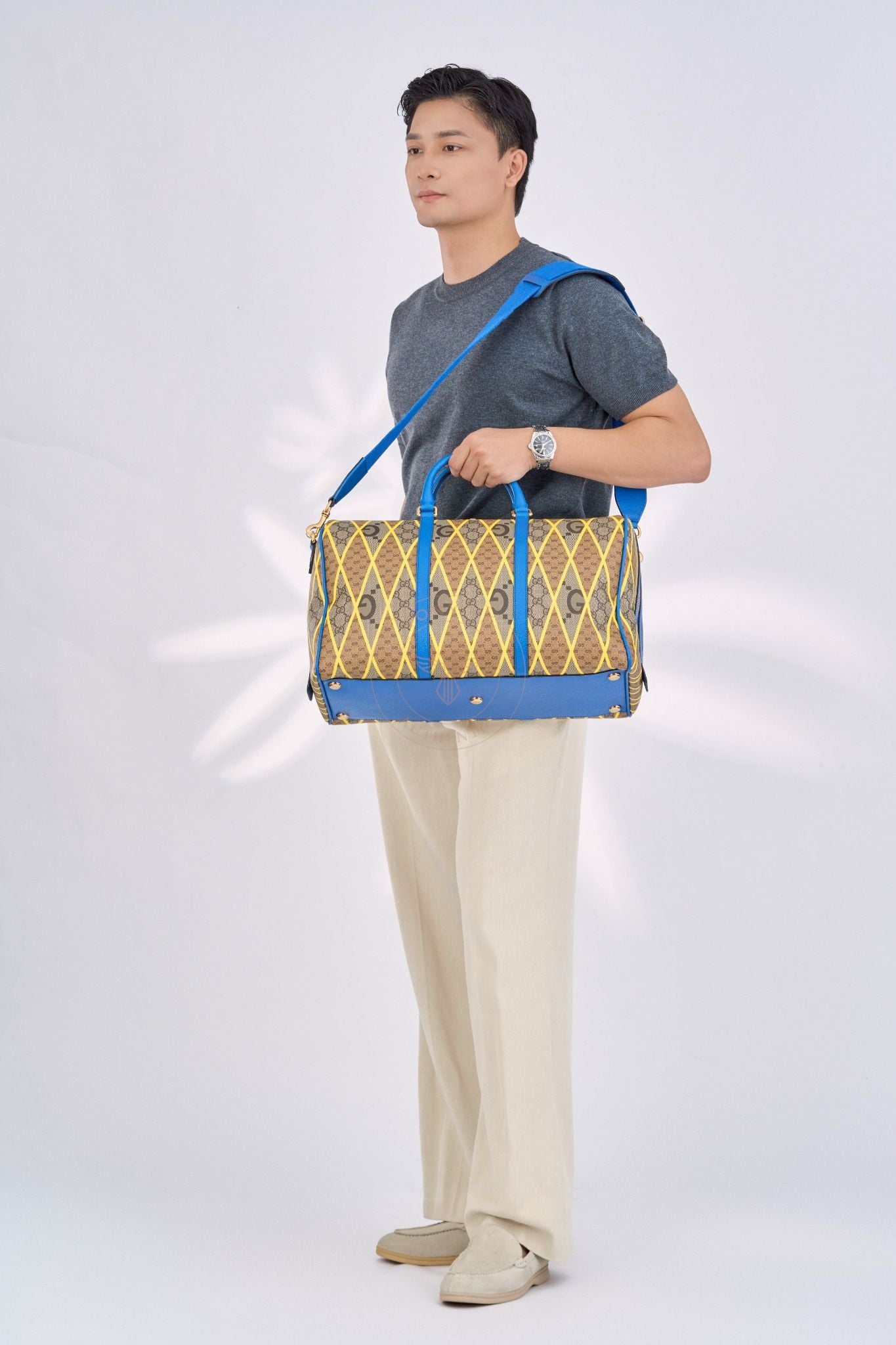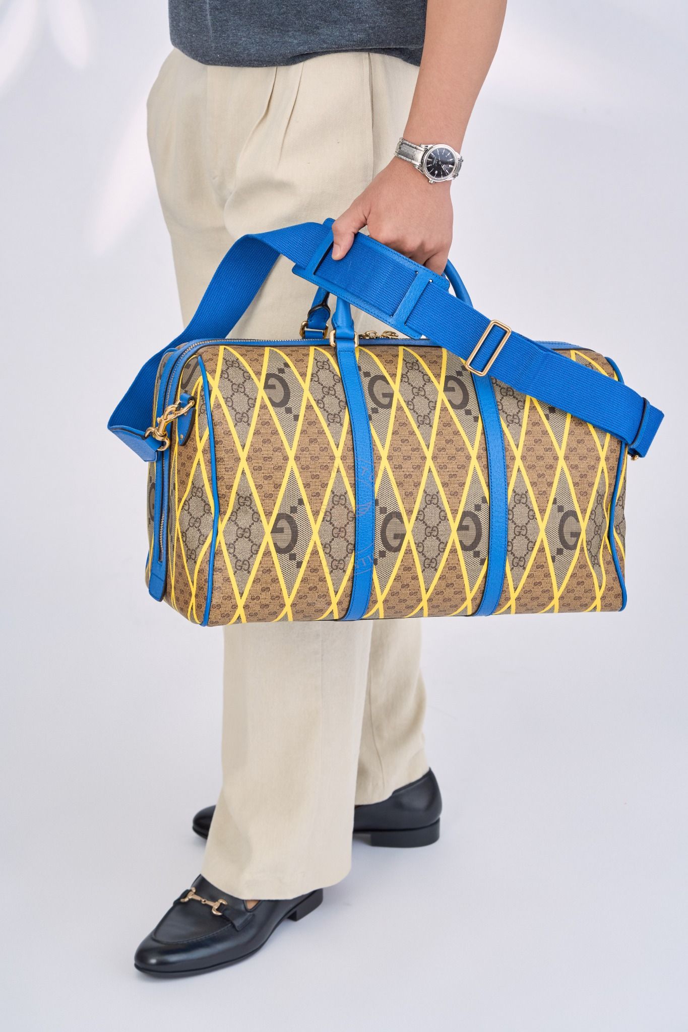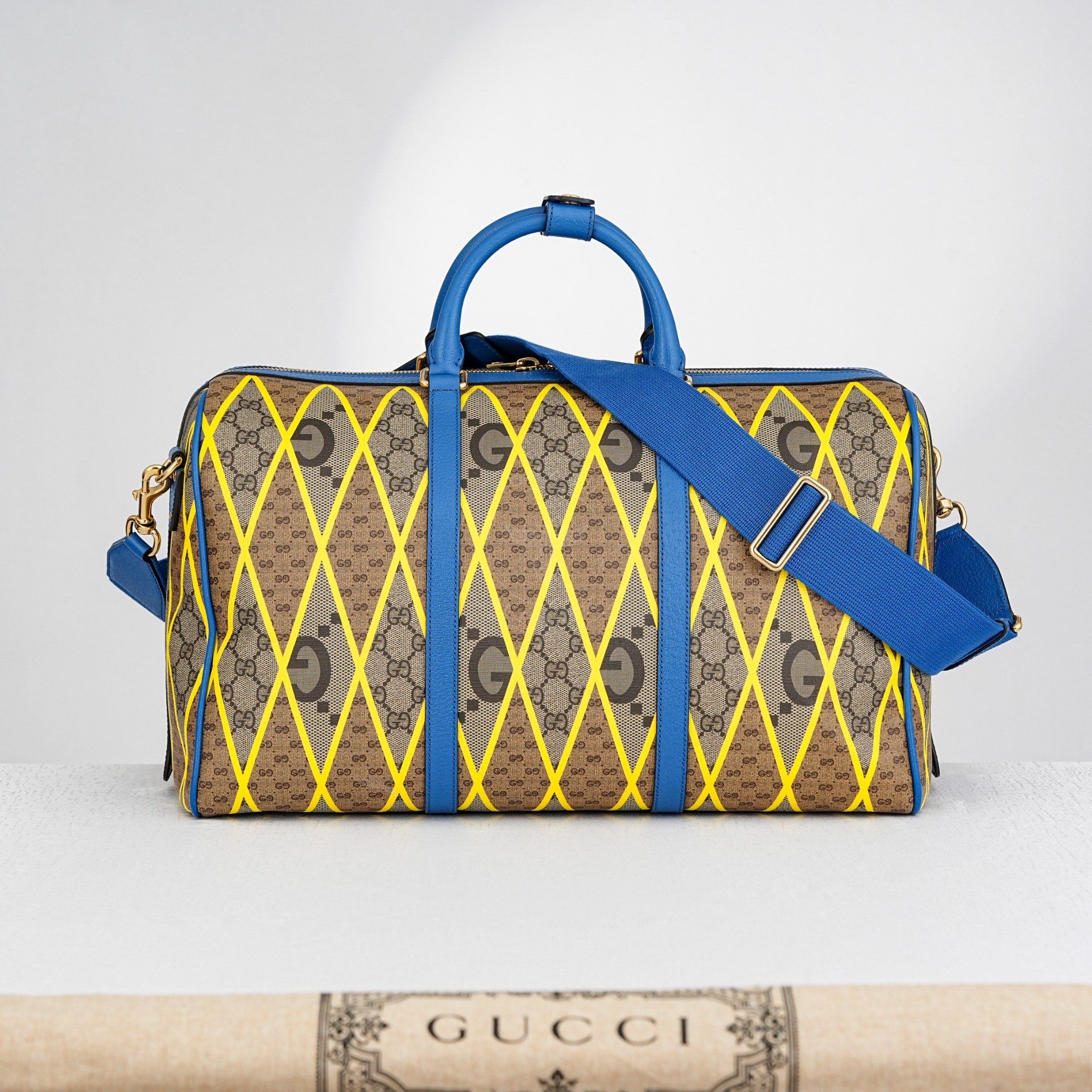 Túi du lịch 𝐆𝐮𝐜𝐜𝐢 𝐆𝐆 𝐑𝐡𝐨𝐦𝐛𝐮𝐬 𝐏𝐫𝐢𝐧𝐭 𝐃𝐮𝐟𝐟𝐥𝐞 𝐈𝐧 𝐁𝐞𝐢𝐠𝐞 size 45 (Unisex)