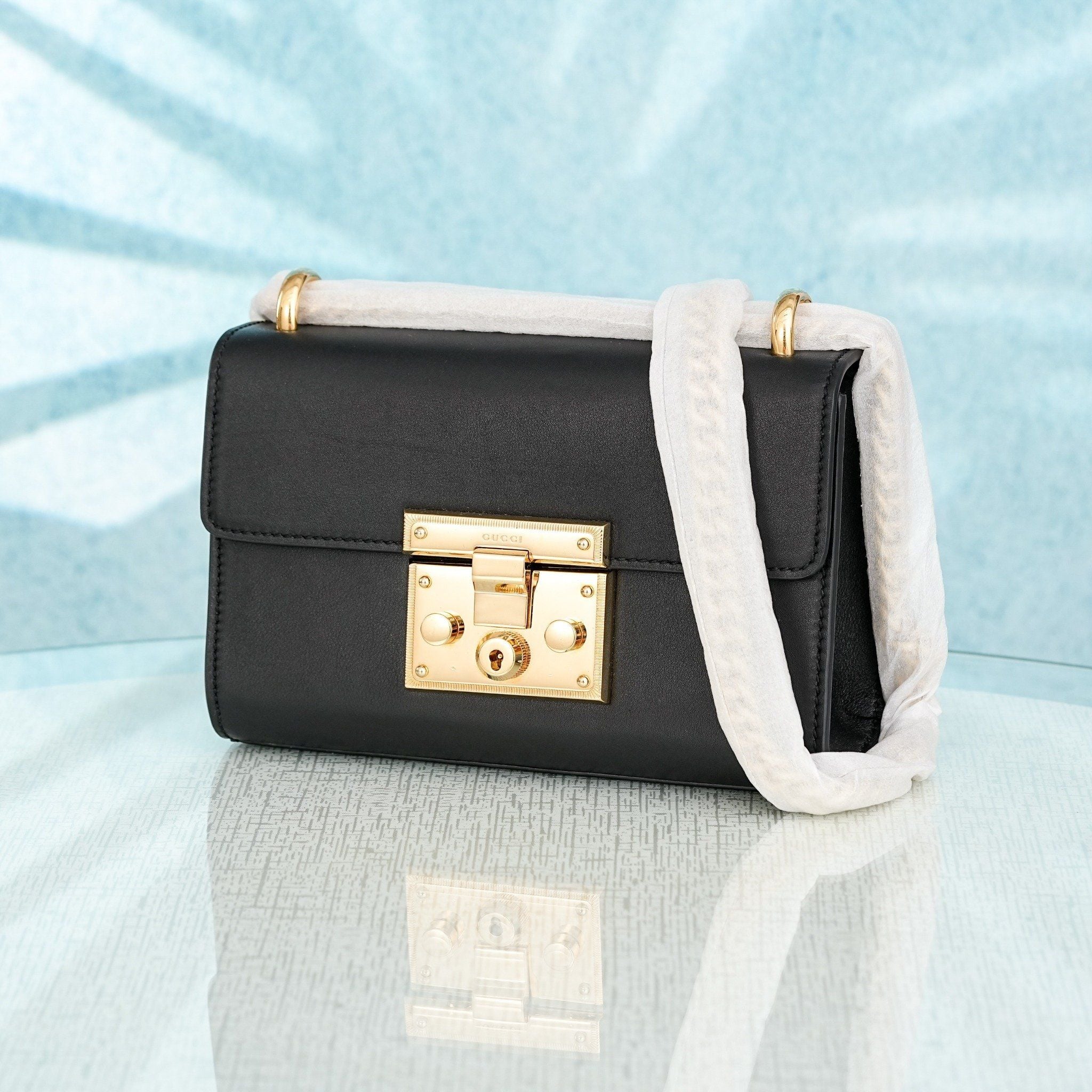 Túi 𝐆𝐮𝐜𝐜𝐢 𝐏𝐚𝐝𝐥𝐨𝐜𝐤 𝐂𝐚𝐥𝐟𝐬𝐤𝐢𝐧 𝐢𝐧 𝐁𝐥𝐚𝐜𝐤 size 20