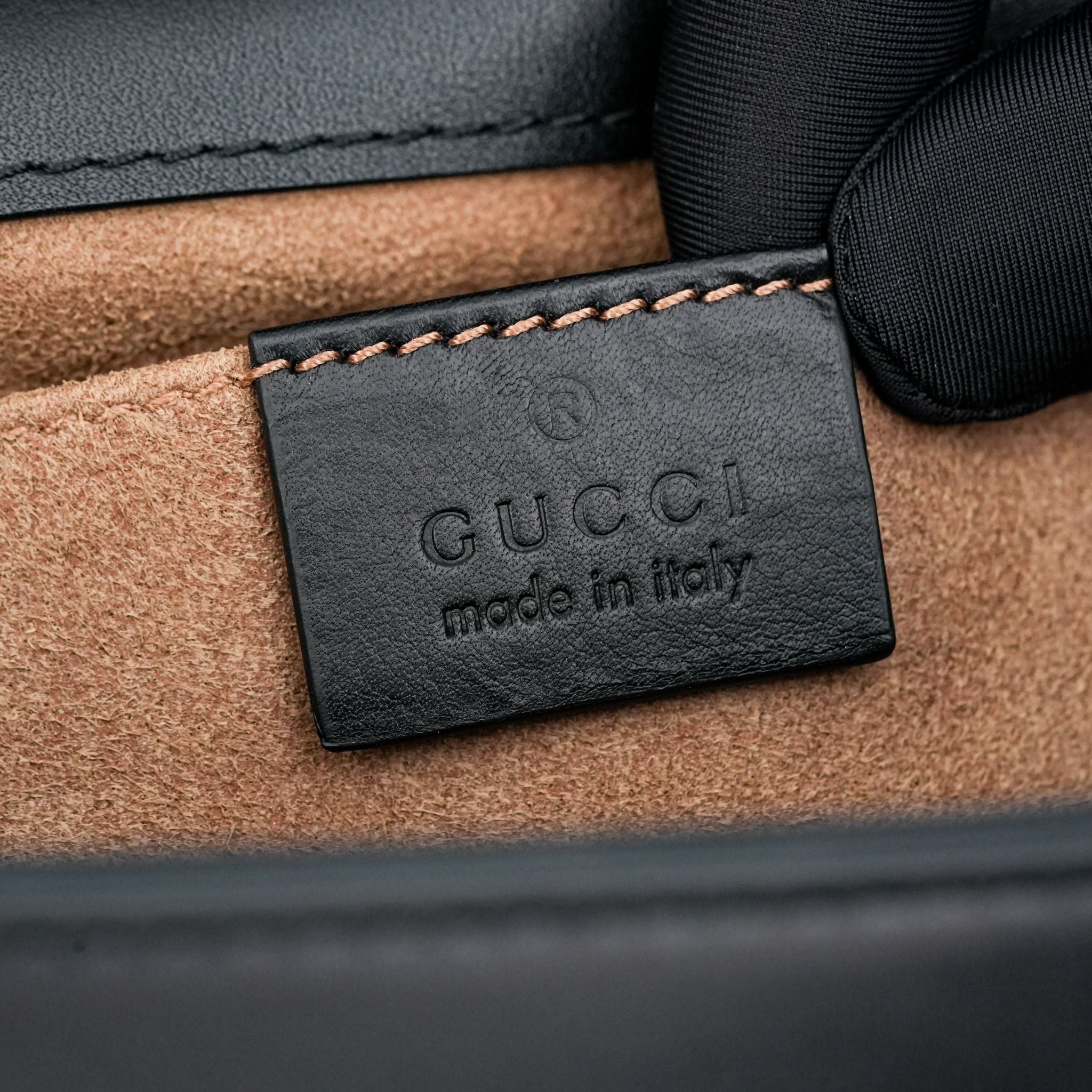 - Bên trong được lót da lộn mềm mại, chia ngăn hợp lý, phù hợp sử dụng cho cả công việc lẫn tiệc tối. Mẫu túi này là biểu tượng của sự sang trọng, tinh tế và gu thẩm mỹ thời thượng mà Gucci luôn đại diện.