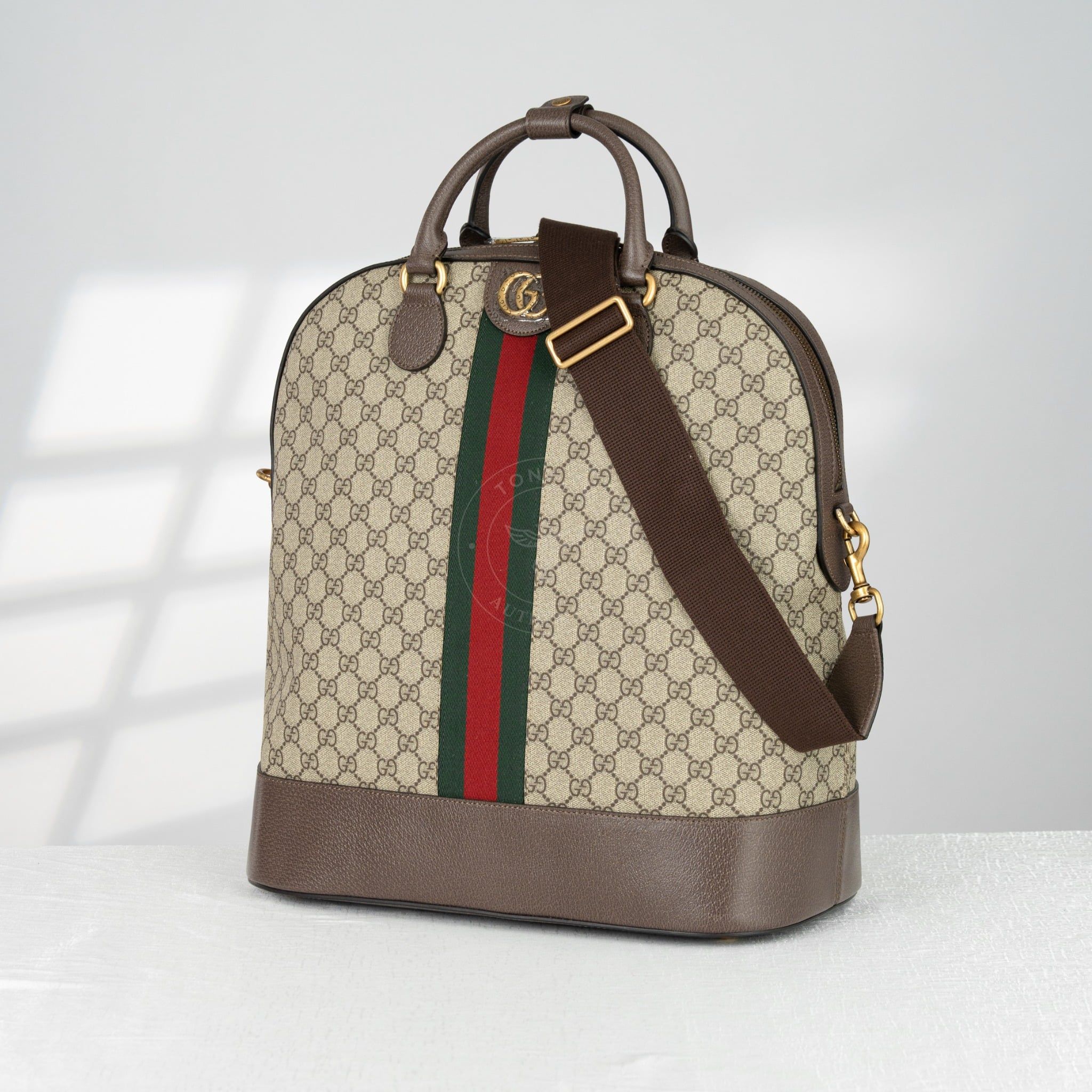 - Thiết kế sang trọng với canvas GG Supreme bền bỉ, viền da cao cấp và chi tiết kim loại tinh xảo, phản ánh tay nghề thủ công chuẩn mực của Gucci trong các dòng hành lý cao cấp.
