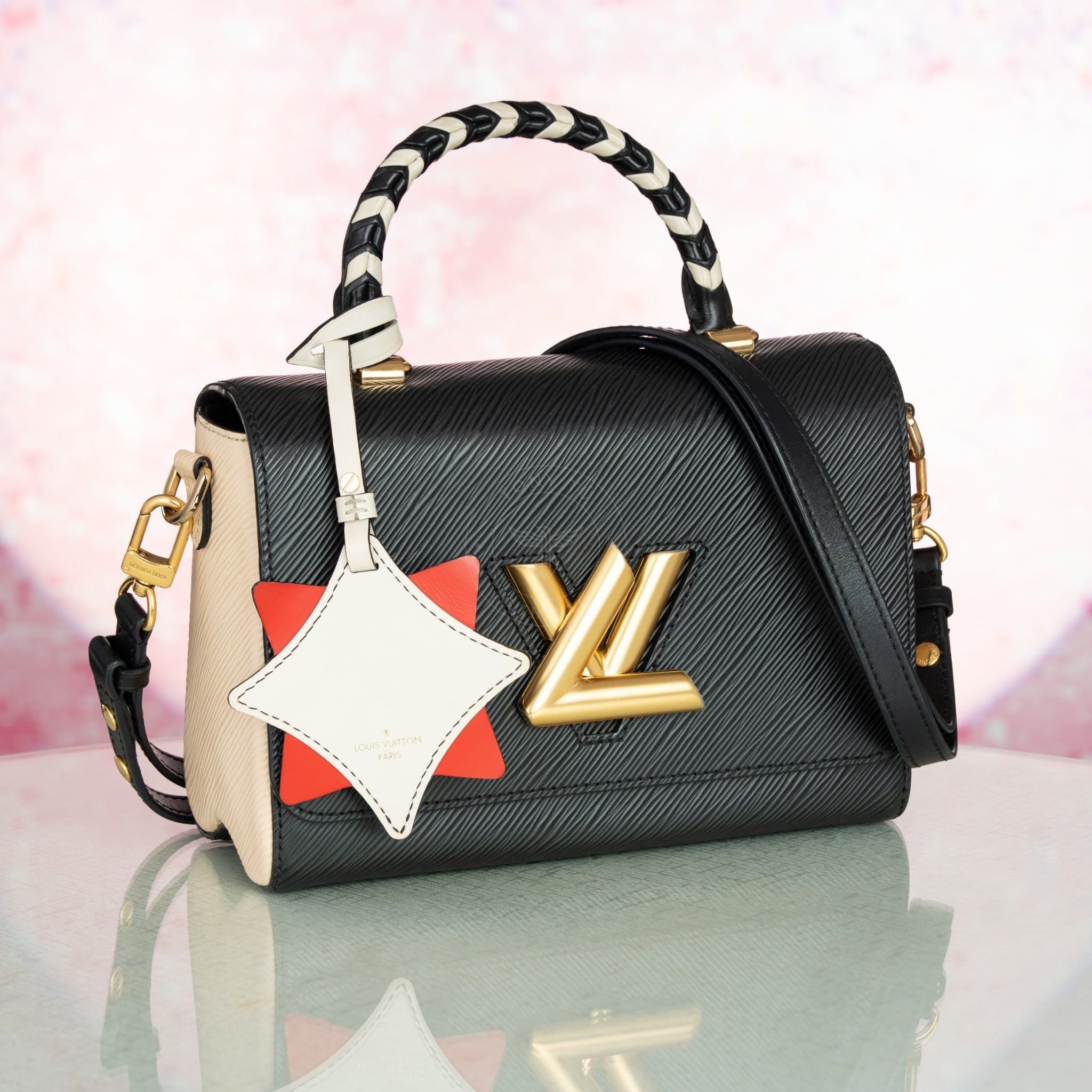 - Túi Louis Vuitton "Crafty Twist" thuộc bộ sưu tập giới hạn "LV Crafty" ra mắt năm 2024, nổi bật với quai Top-handle bện thủ công, kết hợp cấu trúc Twist thanh lịch kinh điển và họa tiết Monogram được tái diễn giải bằng những nét vẽ đậm, lấy cảm hứng từ nghệ thuật graffiti đường phố, nổi bật và táo bạo.