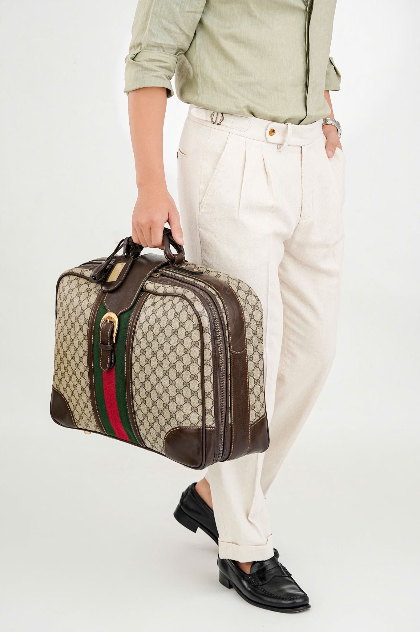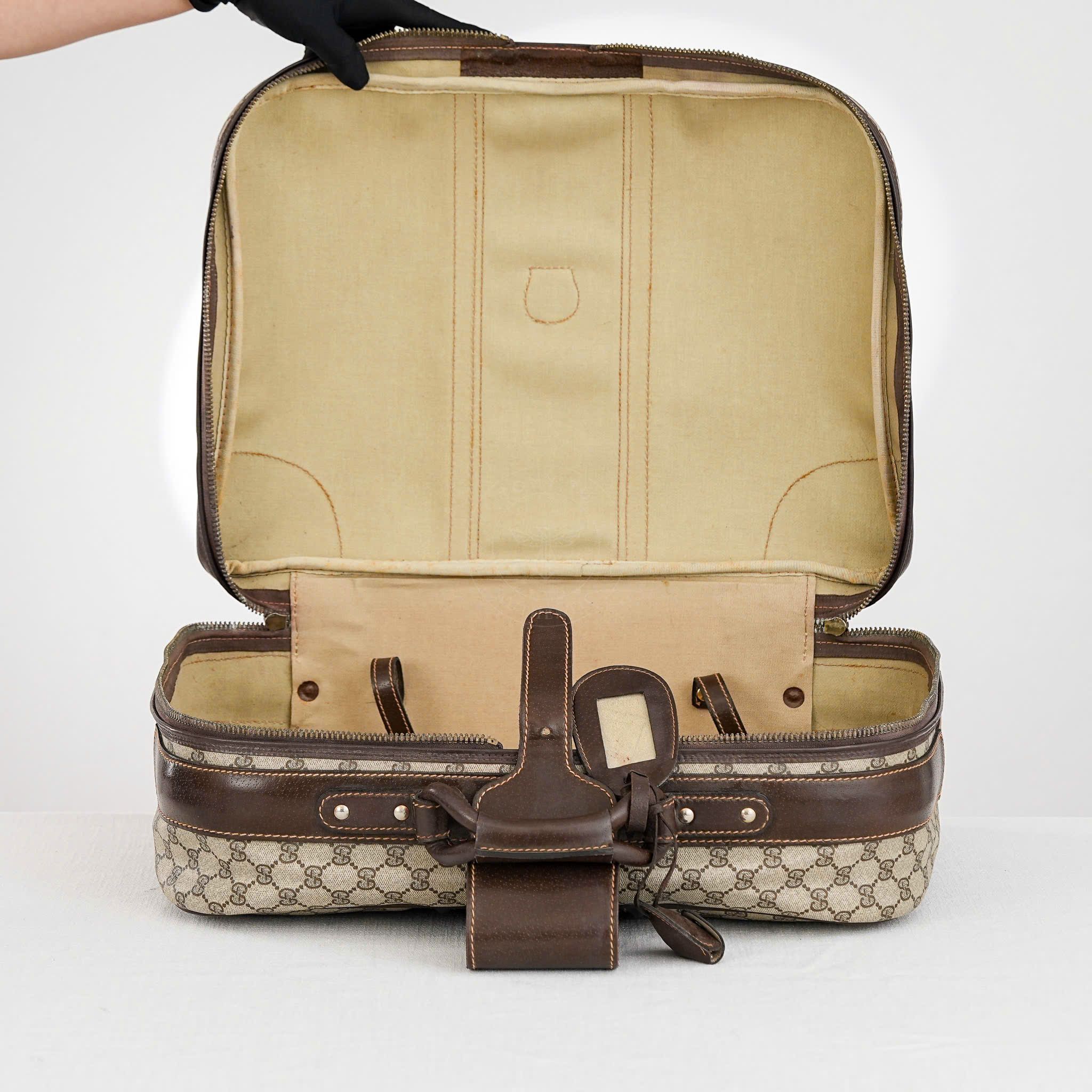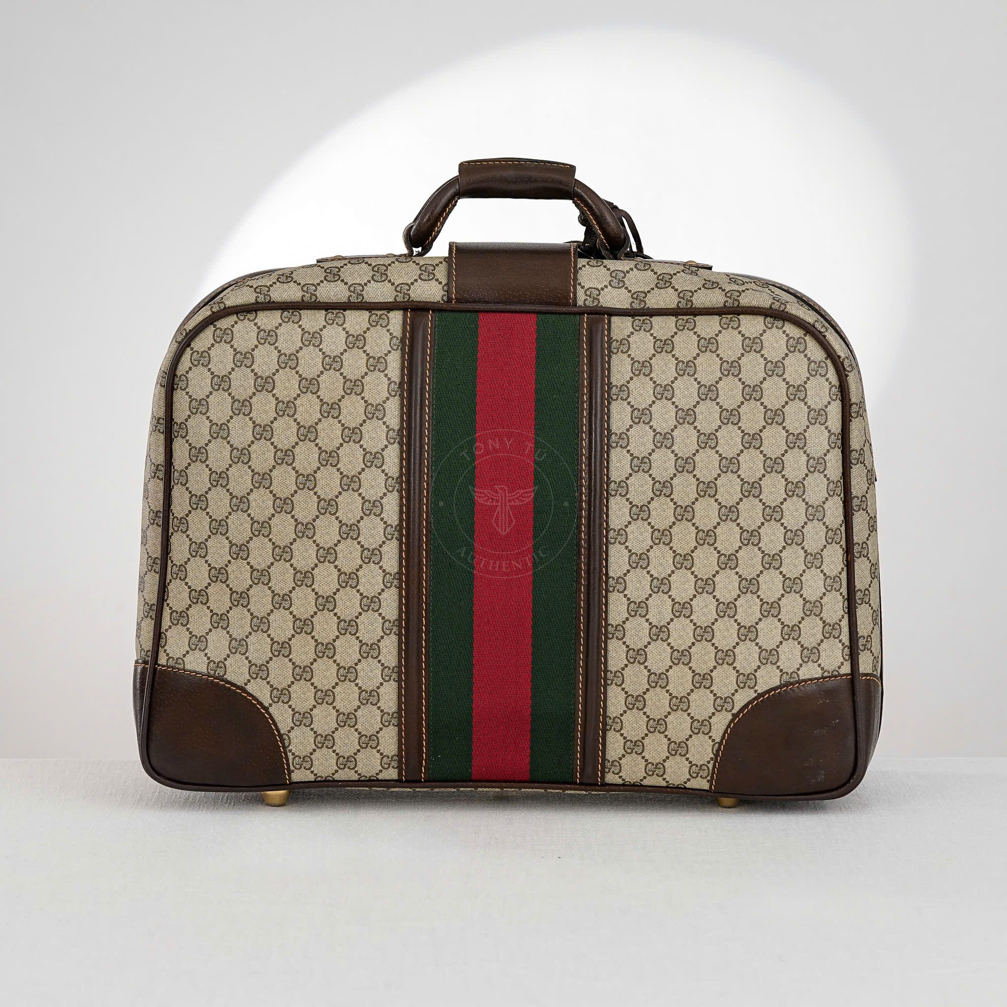 - Thiết kế siêu cổ điển, hoàn hảo để làm món hàng sưu tầm hay sử dụng. Là một trong những thiết kế đời đầu của Gucci, những chiếc vali đã làm lay chuyển giới thời trang bởi vẻ sang trọng kết hợp với những đường nét đặc trưng, tất cả đã tạo nên một siêu phẩm với vẻ đẹp phi thời gian.