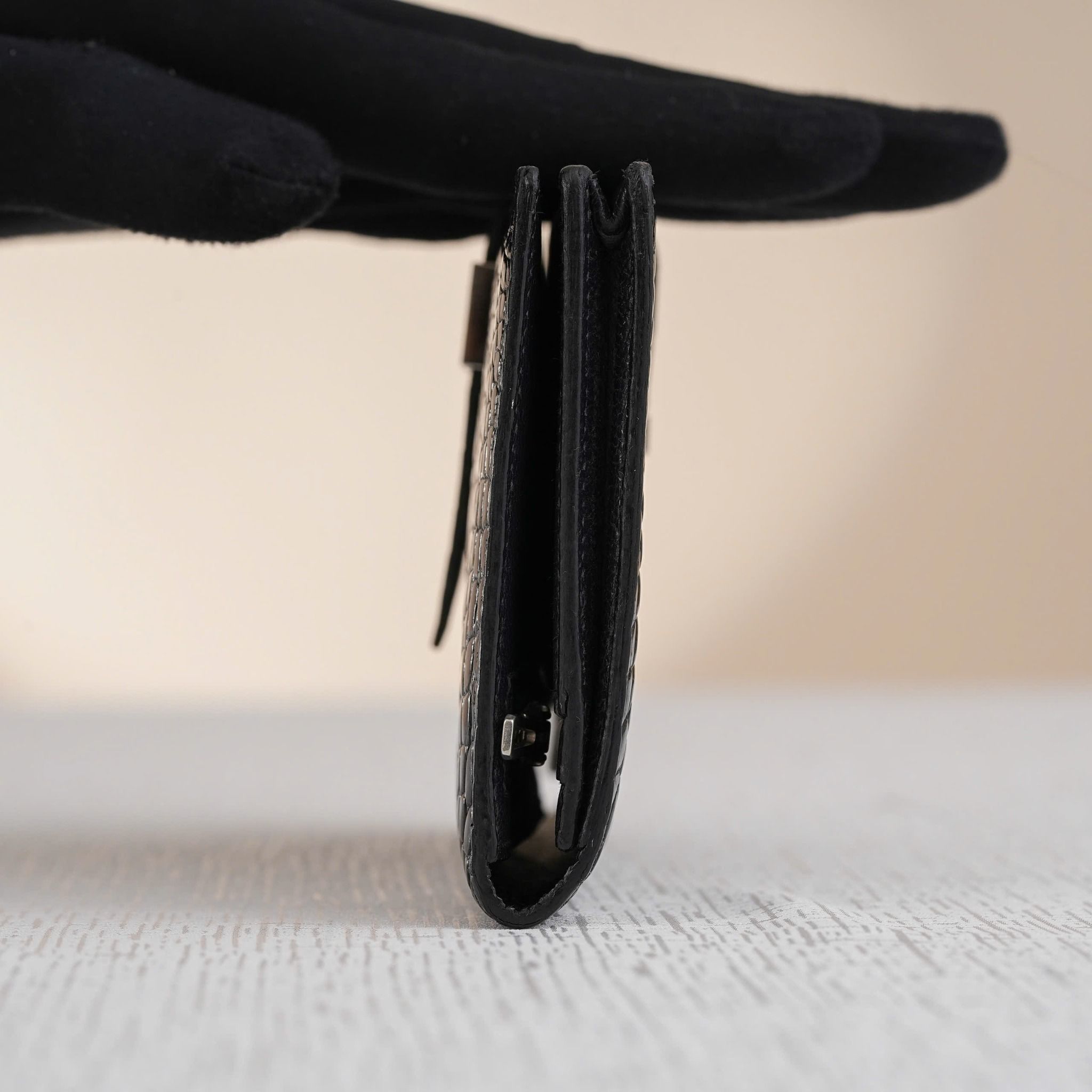 - Chế tác từ dòng da cá sấu mõm ngắn Mỹ Alligator nổi tiếng đắt đỏ, mang đến sự quyền lực, cuốn hút cho tổng thể thiết kế.