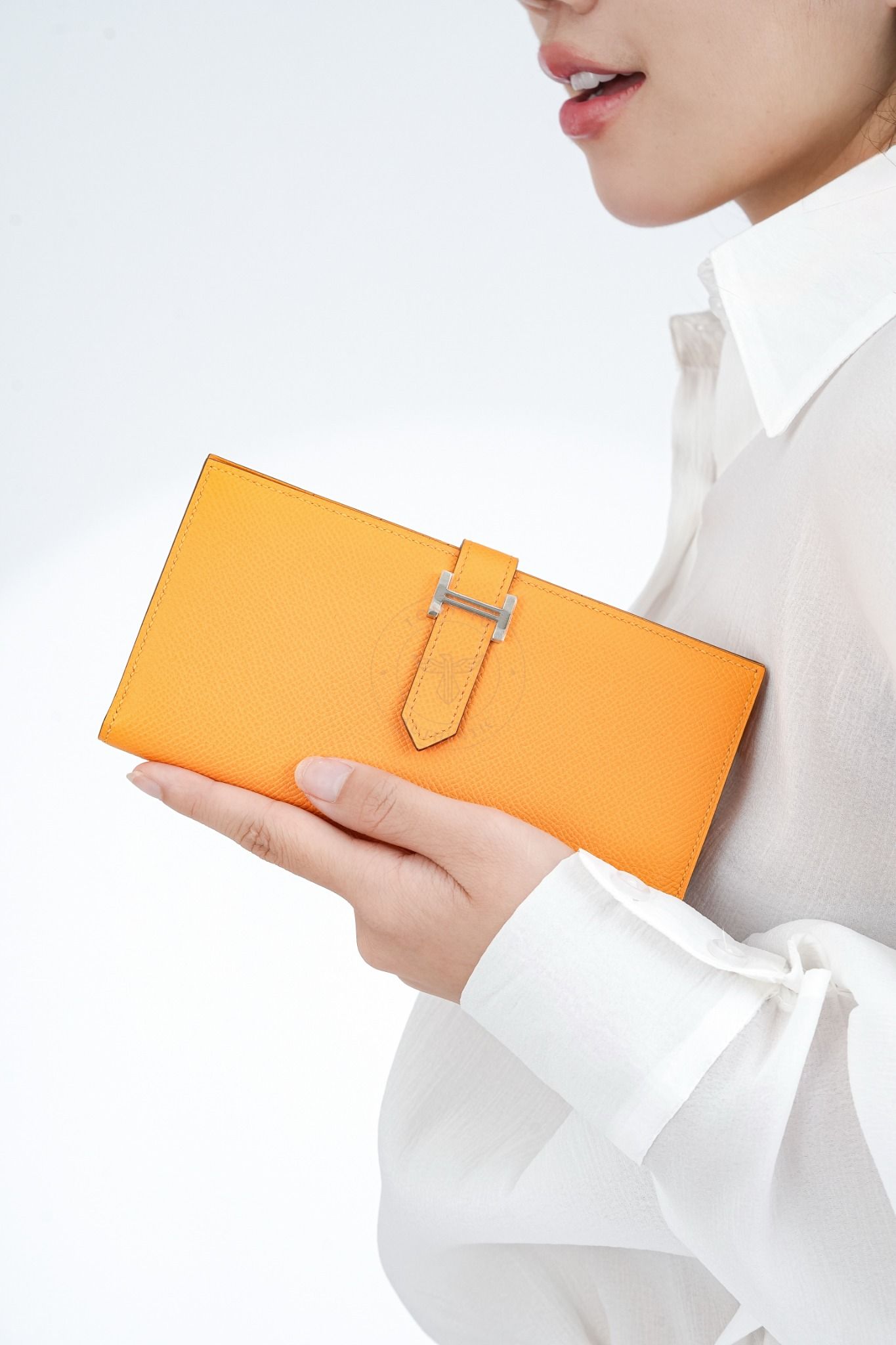 - Giới thiệu dòng ví dài Bearn Bifold kinh điển của Hermès, dễ dàng nhận biết với chi tiết khóa xiên độc đáo và Logo Hermès Bearn bằng kim loại Palladium. Sản phẩm đậm phong cách Quiet Luxury thanh lịch luôn có thể tìm thấy ở những sản phẩm của Hermès, dễ dàng trở thành một món quà tặng lý tưởng cho nhiều đối tượng.
