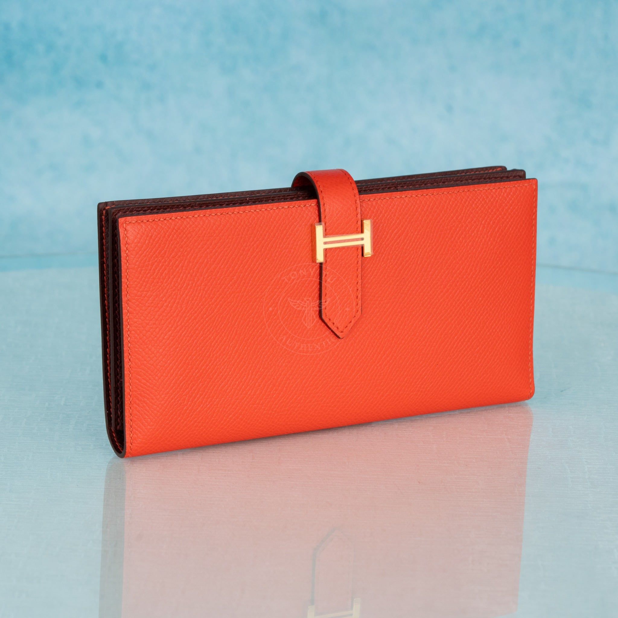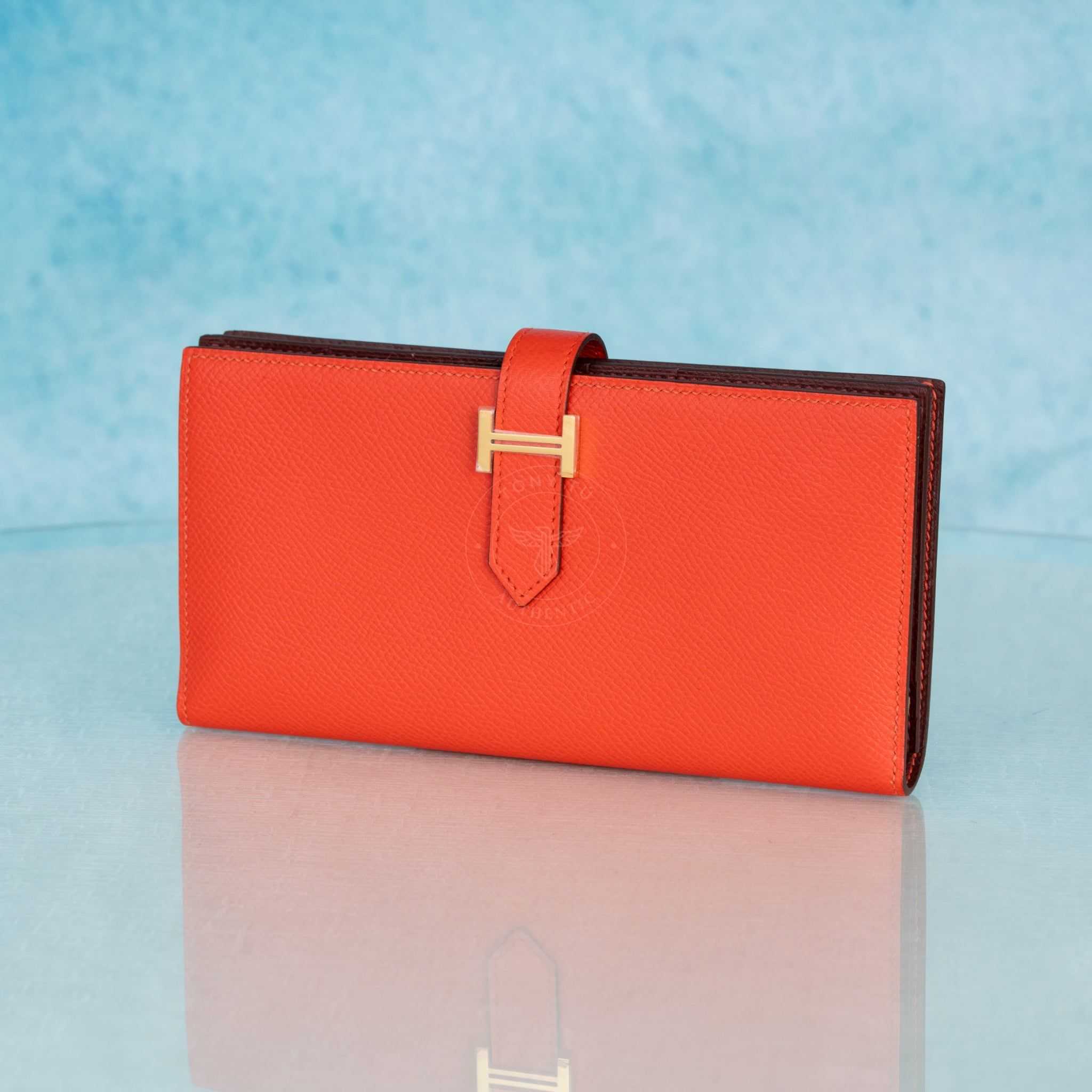 Ví dài Hermes Bearn Bifold Orange Field Epsom