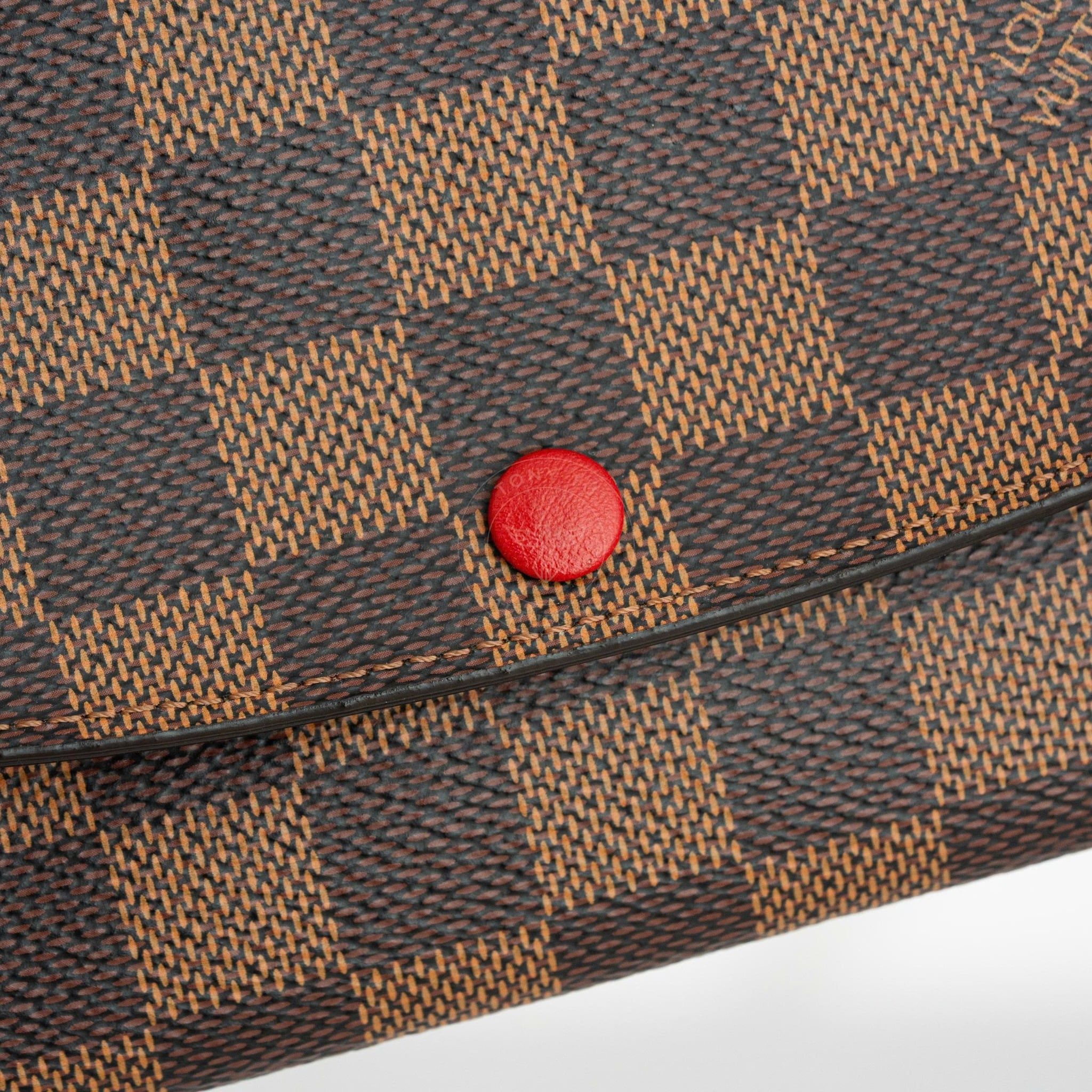 - Chất liệu Canvas phủ Vinyl cùng khả năng chống xước và nước đỉnh cao. Họa tiết Damier với tông màu nâu cổ điển và sang trọng.