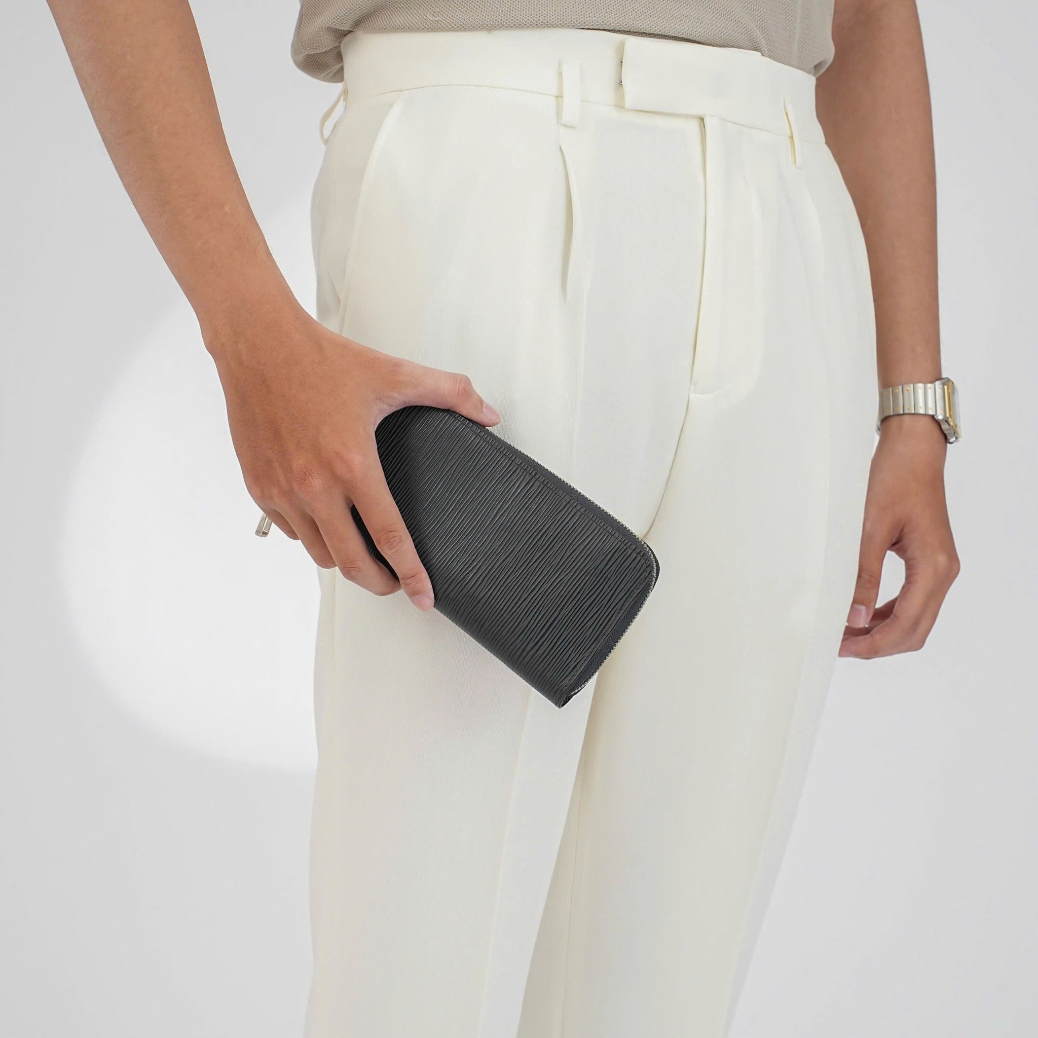 - Chất liệu da bê Epi dập nổi gợn sóng tinh tế, không chỉ tăng vẻ đẹp mà còn chống nước và chống xước, giữ ví luôn mới qua thời gian.