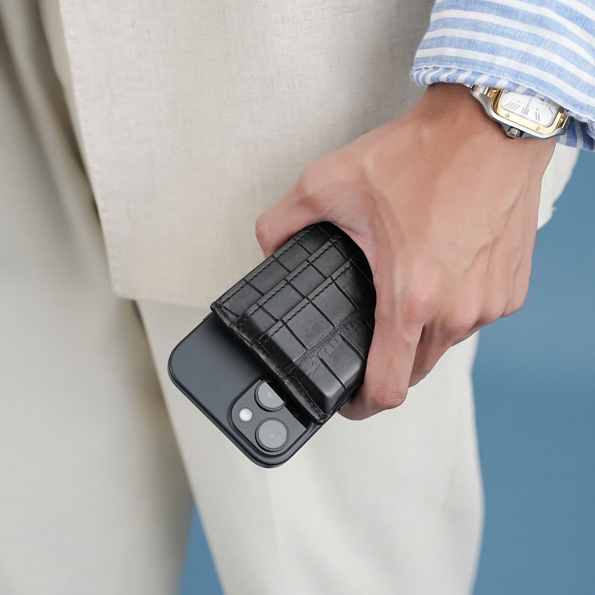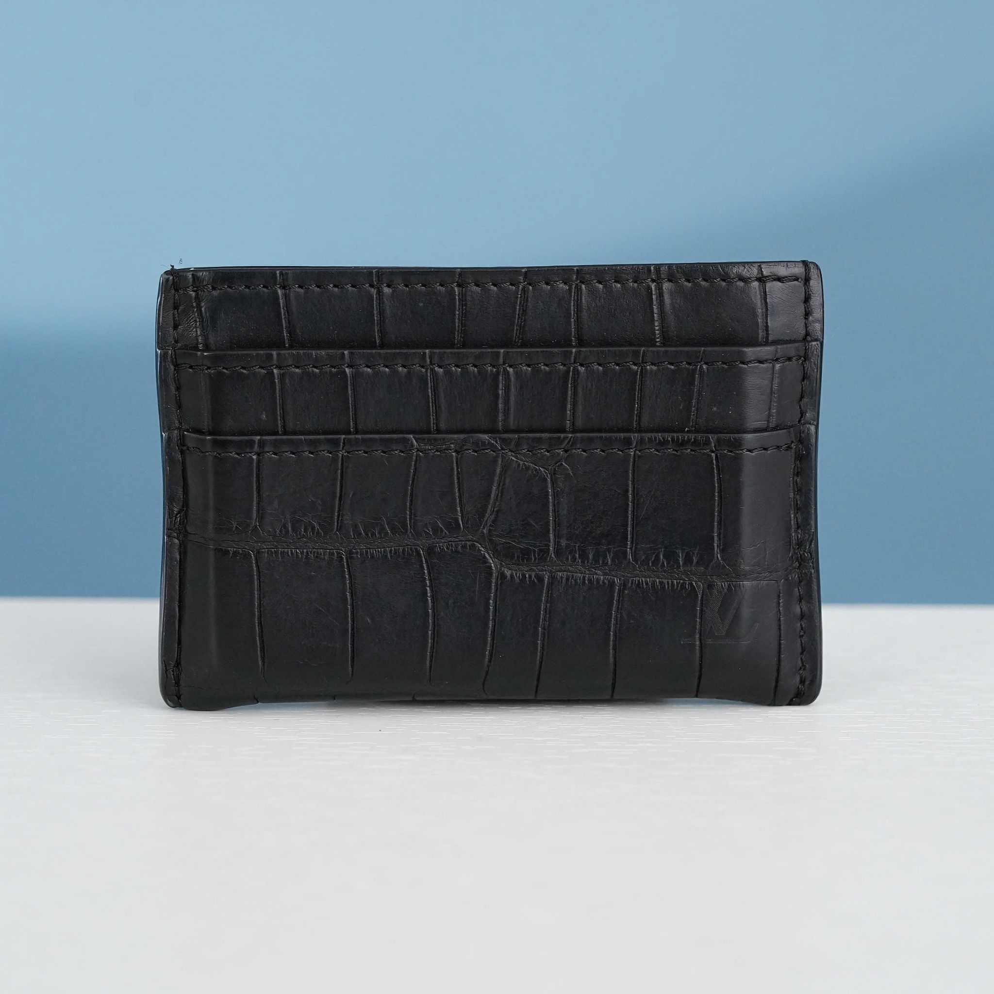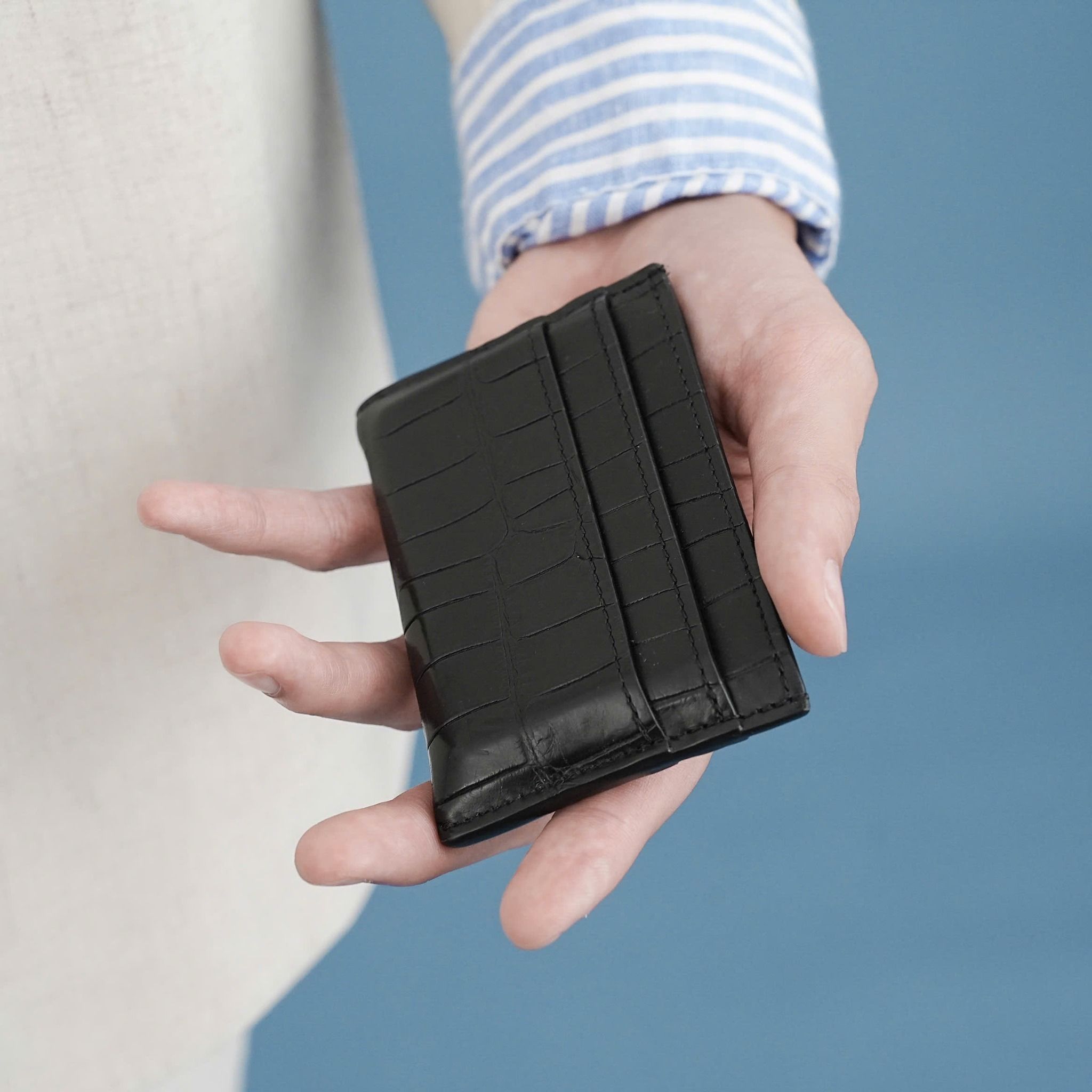 - Crafted from premium crocodile leather, one of the most luxurious materials in fashion, this card holder is a statement of opulence and exclusivity. The crocodile leather, known for its unique texture and softness, offers unmatched durability. Each piece is meticulously sourced from reputable suppliers, ensuring the highest quality and distinctiveness.
