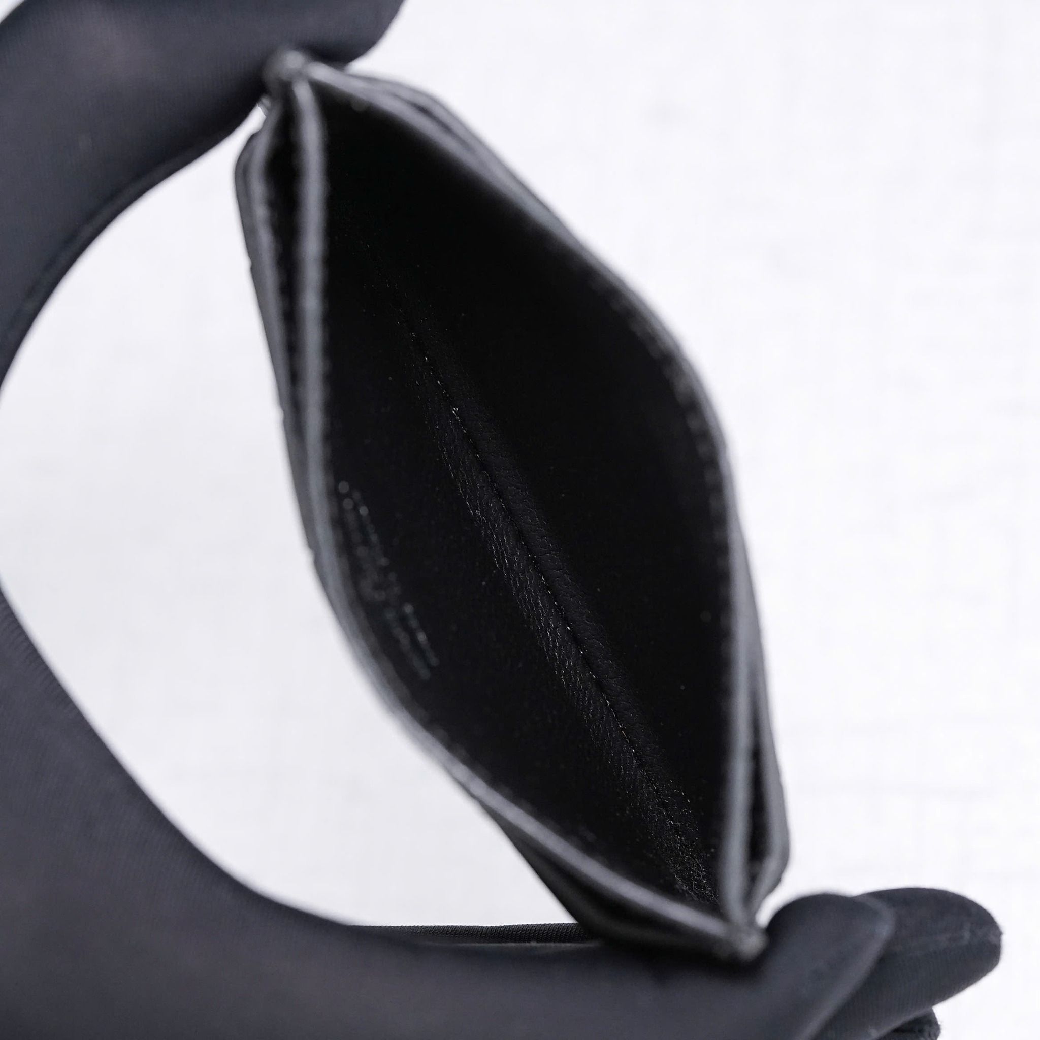 - Coated in a sophisticated black hue, this card holder exudes an air of mystery and effortlessly complements a variety of fashion styles. The product is not just a testament to refined design but also a symbol of status and authority.
