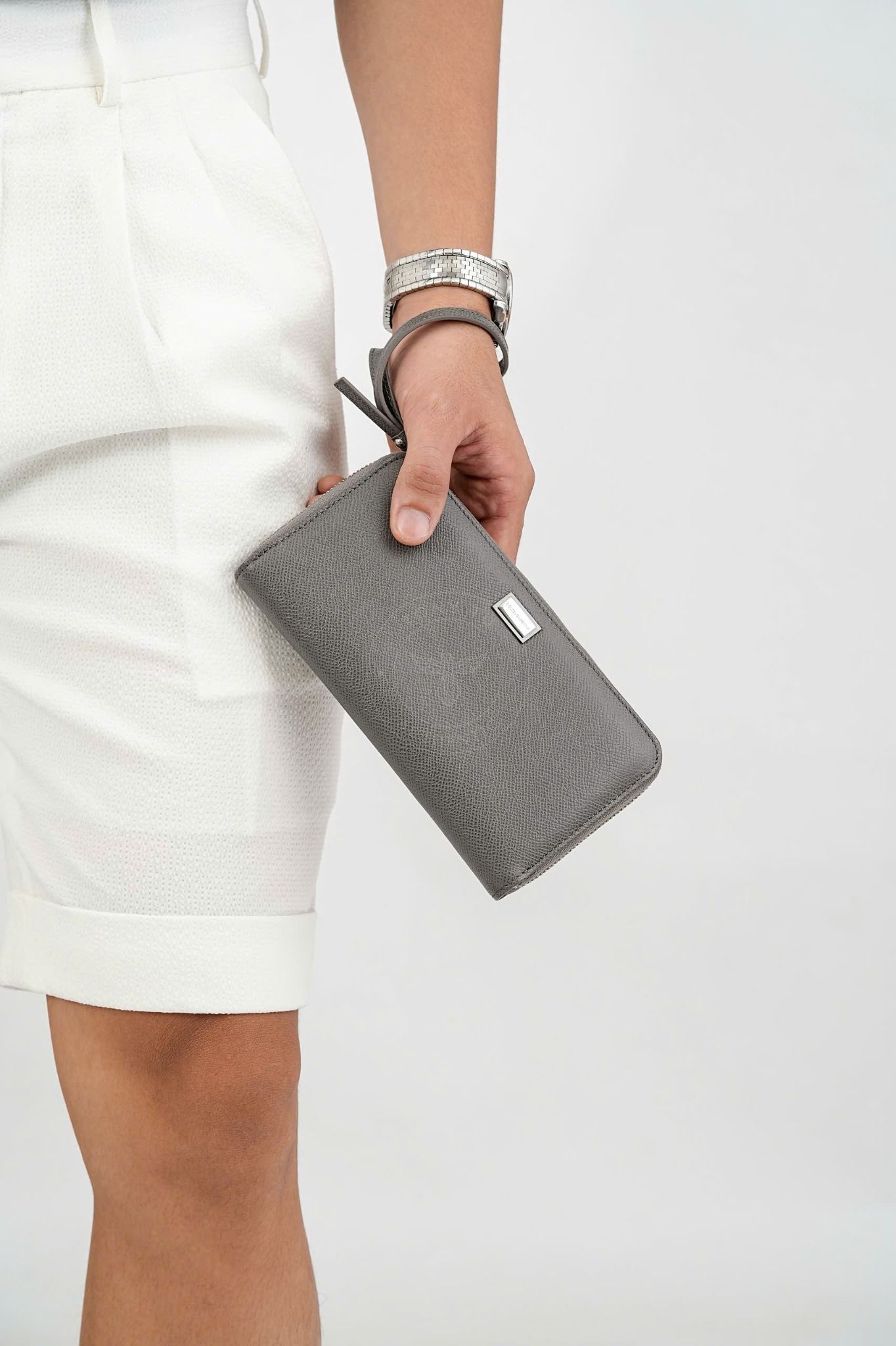 - Dập vân Saffiano trên nền da bò xám đá, mang lại vẻ mạnh mẽ và thanh lịch, dễ dàng cho chủ nhân phối đồ.